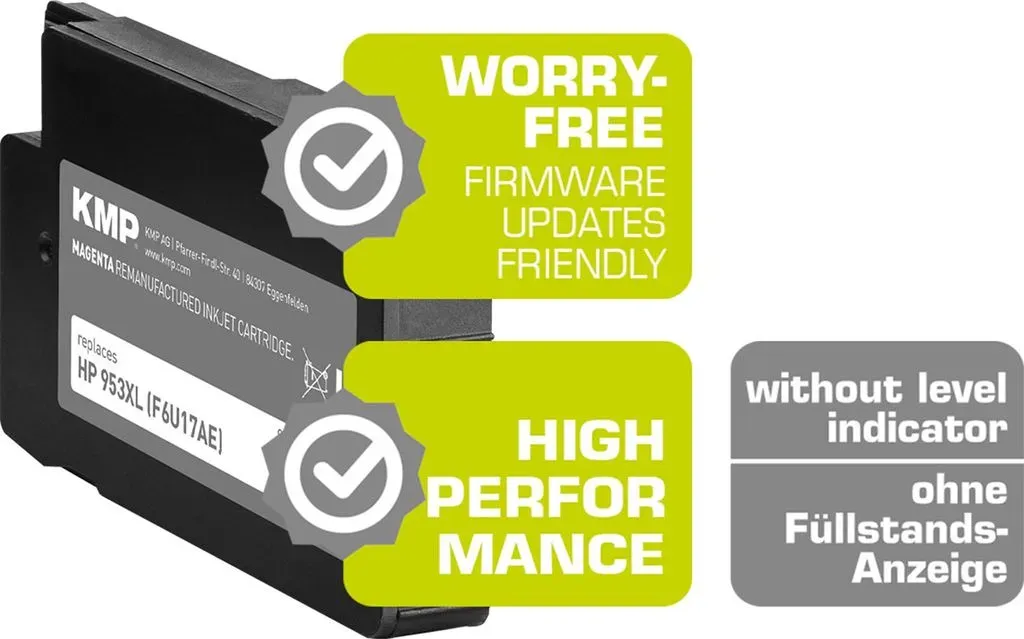 10 Händlerangebote bei billiger.de - Kategorie: Druckerpatronen - KMP - Diese Tintenpatrone verspricht absolute Zuverlässigkeit und gleichbleibend hohe Druckqualität über die gesamte Gebrauchsdauer. Das Schriftbild der Kartusche zeichnet sich durch optimalen Deckungsgrad sowie exzellente Tonerhaftung aus. Der verwendete Toner ist gesundheitlich unbedenklich. - GTIN:4011324376111 Dieses Angebot ist empfehlenswert für Nutzer, die eine günstige, kompatible schwarze Patrone von einer bekannten Marke wie Pelikan bevorzugen. ![]() ![]() Pelikan H97 kompatibel zu HP 953XL schwarz