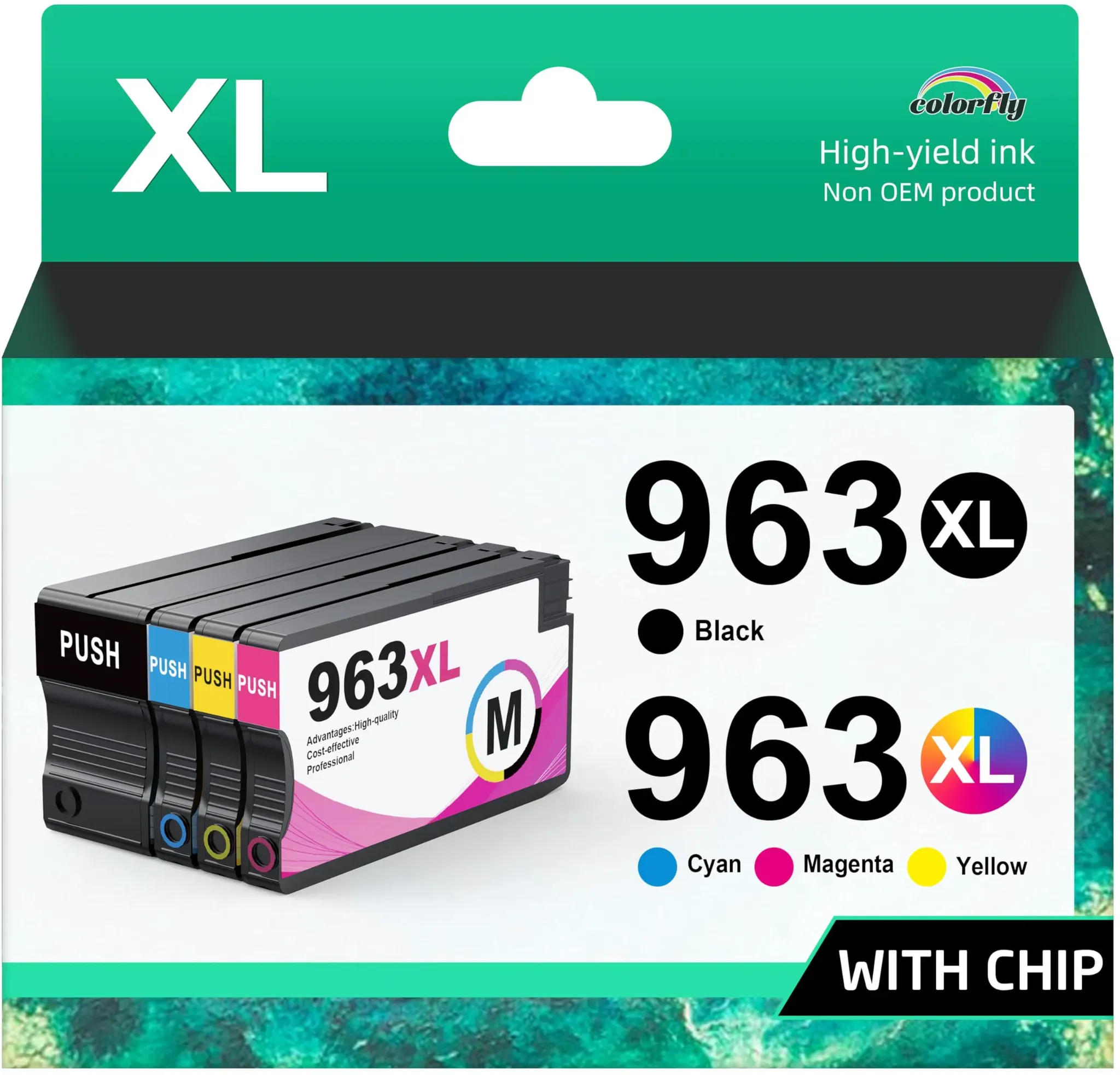 Zustand: Neu - 8,50 € / Stück - CML-Tech - NewLift NewLift für HP 963XL Multipack - hp 963xl multipack - EAN: 6976365824244 - [ 963 Druckerpatronen für 963XL Druckerpatronen ]:NewLift 963 963xl multipack kompatibel für officejet pro 9010 patronen(Verpackung kann variieren). [ š ï¸ Achtung ]:Our NewLift 963xl multipack nicht kompatibel mit +e Druckern.(wie:9010e 9012e 9014e 9015e 9016e 9018e 9019e 9020e 9022e 9025e) [Kompatible Drucker]:963XL Multipack kompatible für 963 963 XL für Officejet Pro 9010 patronen ,Officejet Pro 9012 patronen, Officejet Pro 9013 9014 9015 9016 9018 9019 9020 9022 9023 9025 9026 9028 [ Inhalt der Verpackung ]:963 XL Druckerpatronen iinklusive 4er Pack für druckerpatronen 963, 1 x 963 963XL Druckerpatronen ,1 x963XL Cyan, 1 x Druckerpatronen 963XL Magenta, 1 x 963XL Gelb Kompatibel für Officejet Pro 9010 Patronen. [ 963XL Druckerpatronen Seitenleistung]: Bis zu 2000 Seiten pro 963 XL für 963 Druckerpatronen Schwarz ; 1600 Seiten für pro 963XL druckerpatronen Cyan Magenta und Gelb, bei 5 % A4-Deckung. [Erfüllung Ihrer Bedürfnisse]:Unsere NewLift für 963 963XL Multipack erfüllen Ihre vielfältigen Anforderungen, ob in der Schule, im Büro oder zu Hause, und sind immer für Sie da. - Verkäufer: ILMARS SAKNE im amazon.de Marketplace Dieses Colorfly Multipack bietet eine sehr günstige kompatible Lösung für den HP 963 XL. ![]() ![]() Colorfly 963XL Tintenpatronen Multipack Kompatibel mit HP 963 963 XL Tintenpatronen Kompatibel mit HP Officejet Pro 9010 9012 9013 9014 9015 9016 9018 9019 9020 9022 9025 (Schwarz Cyan Magenta Gelb)