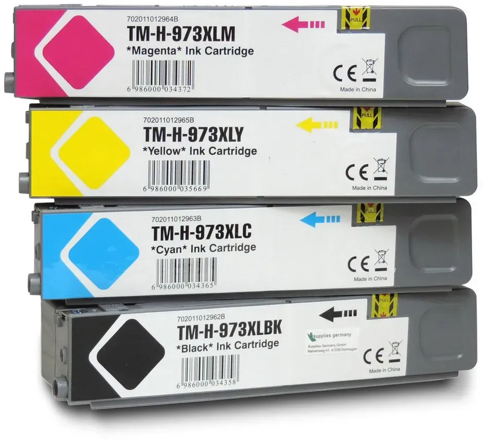 Kategorie: Druckerpatronen - Palmtree - Das Produkt enthält: 1 x 973X Schwarz, 1 x 973X Cyan, 1 x 973X Magenta, 1 x 973X Gelb (4 Packung 973X Ersatz für HP 973X Druckerpatronen) Palmtree 973X Druckerpatronen Kompatibel für HP PageWide Pro 452dw, 452dn, PageWide Pro Multifunction 477dw, 477dn, 577z, 577dw, PageWide Pro Printer and Tray 452dwt, 477dwt, PageWide 552dw, PageWide Managed P55250dw, P55750dw, P57750dw MFP Drucker Geschätzte Seitenausbeute: 10000 Seiten pro 973X Schwarz Patronen; 7000 Seiten pro 973X Cyan/ 973X Magenta/ 973X Gelb (bei 5% Abdeckunge von A4) Palmtree 973X Druckerpatronen Multipack sind mit den neuesten aktualisierten Chips für hohe Kompatibilität ausgestattet; Gewährleistet eine hohe Druckleistung und verhindert das Verstopfen der Druckköpfe Palmtree 973X patronen ausgestattet mit einem intelligenten Chip, der es Ihnen ermöglicht, den aktuellen Tintenstand zu überwachen und rechtzeitig Ersatzpatronen zu bestellen; 973X patronen einfach zu installieren und schnell von den Druckern erkannt - für ein neues Druckerlebnis - 95,99 Euro bei Amazon Marketplace CE - gefunden von billiger.de Dieses kompatible Multipack bietet eine gute Balance zwischen Preis und Leistung und ist eine solide Wahl für den alltäglichen Gebrauch. ![]() ![]() Supplies Germany [ MultiPack ] Tinte/Tintenpatrone 4.1-L0S07AE-MULTI [ mit Chip ] kompatibel mit HP F6T81AE [ 973X ]