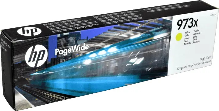 Kategorie: Druckerpatronen - HP - GTIN:0889296544678 - HP F6T82AE - 973X Tintenpatrone magenta, 7.000 Seiten ISO/IEC 24711, Inhalt 82 ml für PageWide Pro 452 dn/dw/477 dn/dw/552 dw/577 dw/z - 109,78 Euro bei tinten-center.com - gefunden von billiger.de Diese gelbe Originalpatrone ist eine der günstigsten Optionen von einem spezialisierten Tinten-Anbieter. ![]() ![]() Original HP F6T83AE / 973X Tintenpatrone gelb
