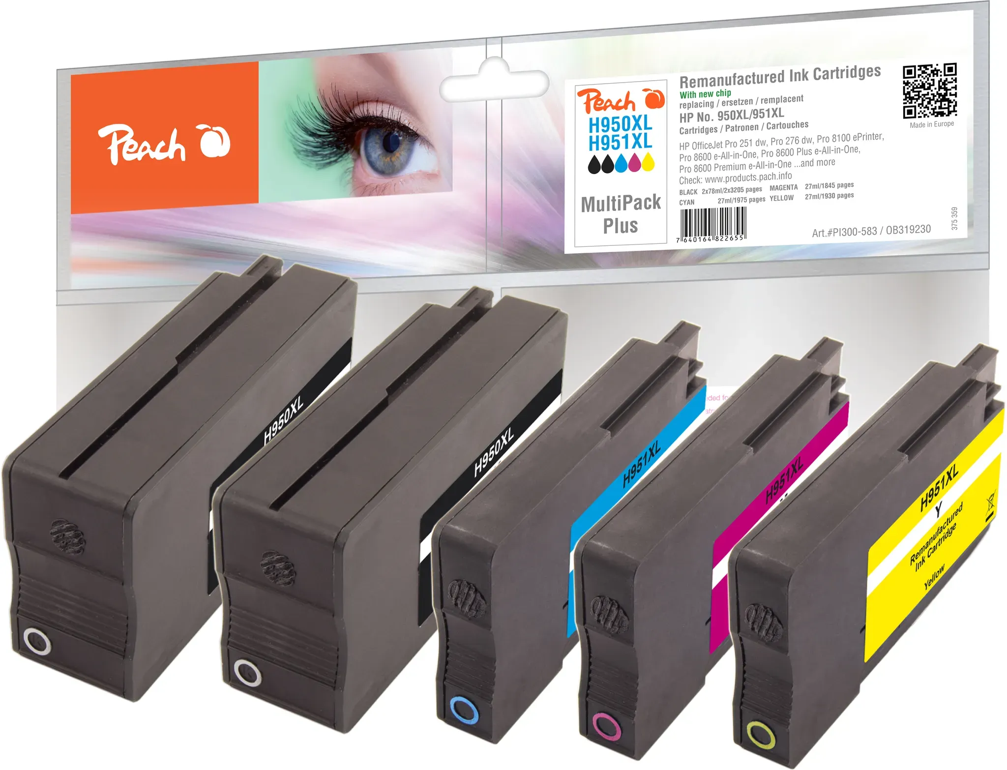 Kategorie: Druckerpatronen - kompatible Ware - GTIN:4057033398426 - XL Tinten Sparset kompatibel zu HP 950XL & 951XL / C2P43AE schwarz, cyan, magent... - 41,29 Euro bei druckdichaus - gefunden von billiger.de Dieses Angebot von Peach ist eine bekannte kompatible Marke, die oft eine gute Qualität liefert. ![]() ![]() Peach kompatibel zu HP 2x 950XL schwarz + 951XL CMYK (C2P43AE)