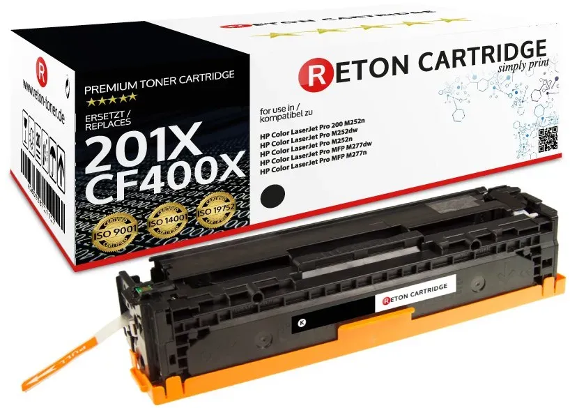 - - 1x XXL Eurotone Toner Alternative für HP CF400X 201X Black Schwarz Lieferumfang 1x Druckerpatrone SCHWARZ XXL kompatibel zu HP CF400X / 201X, mit ca. 2.800 Seiten Die Angaben zur Reichweite erfolgen wie üblich bei 5% Deckung der zu bedruckenden Seite. Kompatible Drucker HP Color LaserJet Pro M M 252 / M 252 dw / M 252 n / M 274 / M 274 dn / M 274 n HP Color LaserJet Pro MFP M MFP M 277 / MFP M 277 dw / MFP M 277 n Ebenfalls kompatibel zu allen Druckern, die laut Hersteller oder Bedienungsanleitung das oben angegebene Produkt verwenden. Produkt Hinweis: Alle hier nen Produkte sind kompatible Neu- oder Mehrwegware. Die neu eingesetzten Einzelkomponenten stammen nicht vom Original (OEM), sondern ausschließlich von unabhängigen Fremdherstellern. Markennamen und Bezeichnungen: Alle Markennamen und Bezeichnungen sind Eigentum der jeweiligen Hersteller und dienen lediglich der besseren Zuordnung der hier aufgeführten Produkte. - Versandkostenfrei: true - - - bei kaufland.de - Kaufland e-commerce GmbH (Marketplace) - gefunden von shopping24 Dieser kompatible Reton Toner bietet eine sehr preiswerte Option für den Schwarz-Druck. ![]() ![]() RETON CARTRIDGE Original Reton Toner kompatibel nach (ISO-Norm 19798) ersetzt CF400X 201X für HP Color Laserjet Pro 200 M252n Laserjet Pro M252dw Laserjet Pro MFP M277dw Laserjet Pro MFP M277n