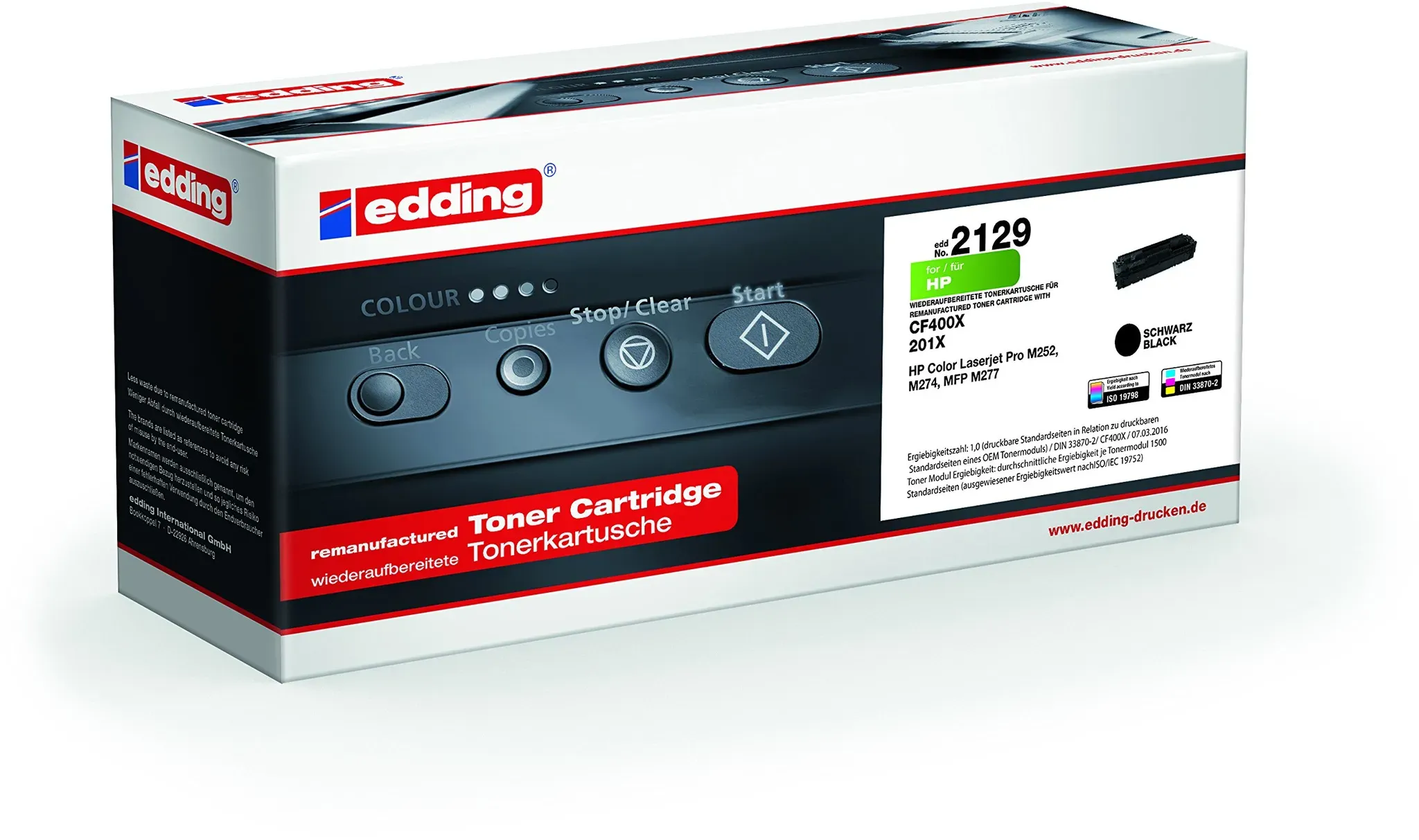 Kategorie: Toner - LeciRoba - GTIN:0754131256408 - Patronen kompatibilität : LeciRoba 4-Pack 201X CF400X Toner Ersatz für HP 201X 201A CF400X CF400A CF401X CF401A CF402X CF402A CF403X CF403A Toner Cartridges ,for HP Color LaserJet Pro M252dw M252n ,MFP M277dw M277 M274n M277c6 M277n Toner (Nicht-OEM) Drucker kompatibilität : Kompatibel mit HP Color LaserJet Pro MFP M277dw M277 M274n M277c6 M277n Printers ,HP Color LaserJet Pro M252dw M252n Drucker (1- Schwarz 1-Cyan 1-Magenta 1-Gelb) Verpackungsinhalt : 1 x Schwarz 201X Toner/ 1 x Cyan 201X Toner /1 x Magenta 201X Toner / 1x Gelb 201X Toner Hohe Seitenausbeute : 2800 Seiten pro Schwarzpatrone, 2300 Seiten pro Farbpatrone (A4 bei 5% Abdeckung,ISO/IEC 19752) 6-Schritte-Inspektion : Eingangsinspektion, Erstinspektion, Selbstinspektion, Inspektion vor Ort, 100% Druckinspektion, Auspackinspektion - 45,59 Euro bei Amazon Marketplace CE - gefunden von billiger.de Dieser edding kompatible Toner ist eine zuverlässige Alternative zum Original und bietet eine gute Qualität. ![]() ![]() edding kompatibel zu HP 201X schwarz (CF400X)