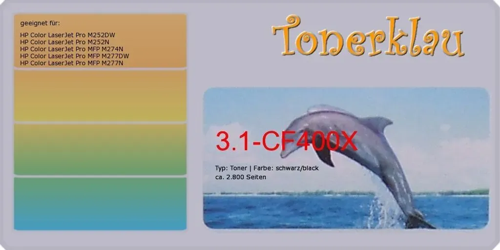 Kategorie: Toner - Aster - GTIN:8718891960014 - black Toner 3.1-CF400X [ mit Chip ] kompatibel mit HP CF400X [ 201X ] geeignet für: HP Color LaserJet Pro M252DW [ CLJProM252DW ] HP Color LaserJet Pro M252N [ CLJProM252N ] HP Color LaserJet Pro MFP M274N [ CLJProMFPM274N ] HP Color LaserJet Pro MFP M277DW [ CLJProMFPM277DW ] HP Color LaserJet Pro MFP M277N [ CLJProMFPM277N ] Artikel Typ: Toner [ mit Chip ] Farbe: schwarz / black Seitenzahl (ca.): 2.800 ArtNr. kurz: 201X weitere Informationen: / hohe Kapazität Artikelnummer: 3.1-CF400X - 19,31 Euro bei Kaufland.de - gefunden von billiger.de Für nur 19,69 Euro erhalten Sie hier einen kompatiblen Toner in Schwarz. ![]() ![]() CF400X/201X Toner - Kompatibel für eBay HP Color Laserjet Pro MFP M277 DW | 1x Schwarz