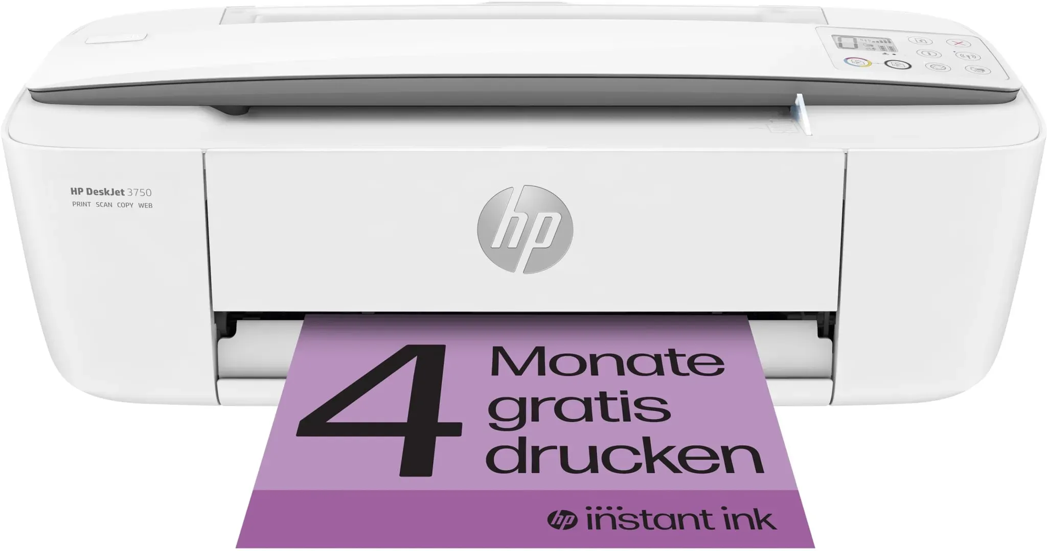 4 Händlerangebote bei billiger.de - Kategorie: Multifunktionsdrucker - HP - Im Rahmen der Druckerinstallation erhalten Sie ein Angebot für 4 Testmonate von HP Instant Ink. In den Testmonaten sind bis zu 700 Seiten/Monat inklusive unabhängig vom Tarif. Wenn Sie sich innerhalb von 7 Tagen nach der Druckerinstallation auf unserer offiziellen Website für HP Instant Ink registrieren; Monatliche Kosten nach Ablauf der Testmonate ab 1,49 /Monat; Monatlich kündbar HP Instant Ink erfordert ein HP Konto, eine gültige Zahlungsmethode, eine E-Mail-Adresse sowie eine Internetverbindung zum Drucker Mit der kleinste HP All-in-One Drucker weltweit, sparsames Multifunktionsgerät mit einfacher und schneller Bedienung, hochwertige Ausdrucke; drucken vom Smartphone, Tablet und HP Snapshots App Mit HP Instant Ink dauerhaft sparen: Nach Ablauf der Probemonate sparen Sie bis zu 70 Prozent bei Tinte; Flexible Tarife für jeden egal ob Sie viel oder wenig drucken; Recycling inklusive Druckgeschwindigkeit: bis zu 8 S./Min (schwarz/weiß), bis zu 5,5 S./Min (Farbe); Druckqualität: bis zu 4800 x 1200 dpi, Anschlüsse: Hi-Speed USB 2.0, Wireless, mobiles Drucken Einfache 3-Schritte Installation mit HP Easy Start, einer automatisierten Download- und Installationsanwendung für HP Drucker: 1. HP Smart App installieren 2. Drucker-WLAN aktivieren 3. Drucker mit HP Smart App koppeln; Geführte Unterstützung mit gratis Support Hotline (DE: 06929993434 / AT: 013602774402) Dieser Drucker ist nur für Patronen bzw. ... Dieser Multifunktionsdrucker bietet ein hervorragendes Preis-Leistungs-Verhältnis und beinhaltet 4 Monate gratis HP Instant Ink. ![]() ![]() HP DeskJet 3750 Multifunktionsdrucker, 4 Monate gratis drucken mit HP Instant Ink inklusive, Drucken, Scannen, Kopieren, WLAN, Airprint, Weiß