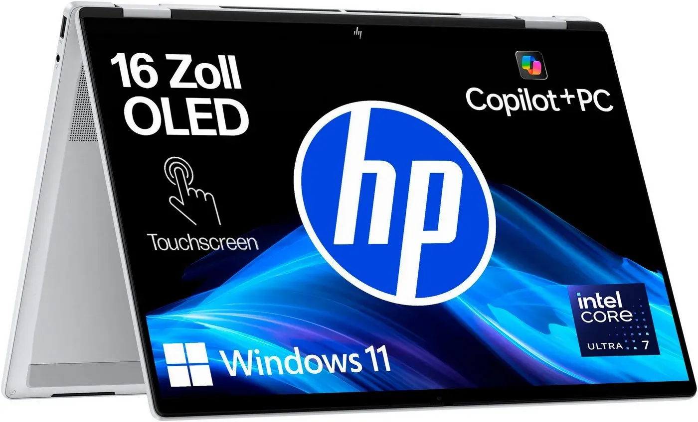 HP - EAN: 0199251800948 - 40,64 cm (16') 2880 x 1800 Pixel / 400 Nits OLED Display Touchscreen / Intel Core Ultra 7 (200) 258V / Intel Arc 140V / 32 GB RAM | 2000 GB SSD / Windows 11 Home | silber | 1.88 kg - bei notebooksbilliger.de - aus Yadore Produktdaten Dieses 16-Zoll-Modell für 1532.93 Euro von Galaxus.de bietet eine solide Konfiguration mit 1TB SSD und 32GB RAM. ![]()