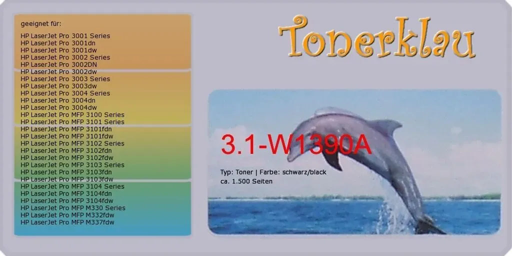 Kategorie: Toner - turbotoner - GTIN:4070229074690 - HP W1390A 139A Laserjet Pro 3001dw 3002dn 3002dw 3003dw 3004dn 3004dw MFP 3101fdn 3101fdw 3102fdn 3102fdw 3103fdn 3103fdw 3104fdn 3104fdw M332fdw M337fdwACHTUNG NICHT GEEIGNET FüR DRUCKER MIT HP+ ABONNEMENT (HP 3001dwe 3002dne 3002dwe 3101fdne) M 3101FDWE - 19,62 Euro bei turbotoner - gefunden von billiger.de Dieser kompatible Toner von Aster black bietet eine kostengünstige Alternative mit Chip und einer Seitenleistung von 1.500 Seiten. ![]() ![]() Aster black Toner 3.1-W1390A [ mit Chip ] kompatibel mit HP W1390A [ 139A ] Seiten: 1.500