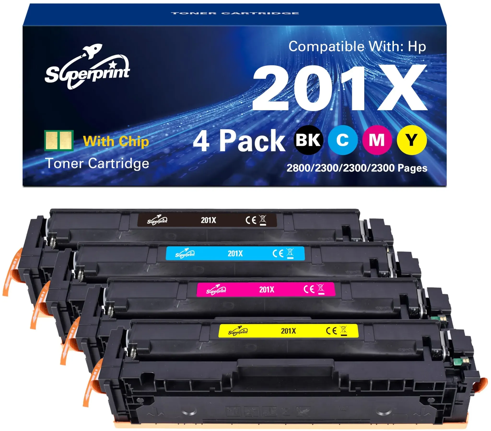 Gesamtsortiment Büro + Schreibwaren Drucker + Scanner Drucken Toner Lasertoner und Trommeln - EAN:4250884183610 - Der Inkadoo Toner Multipack ist eine hochwertige, kompatible Lösung für Drucker der HP Color LaserJet Pro Serie. Dieser Multipack enthält vier Tonerkartuschen in den Farben Schwarz, Cyan, Magenta und Gelb, die speziell für die Modelle HP 201X / CF400X und CF253AM entwickelt wurden. Mit einer beeindruckenden Druckleistung von bis zu 9700 Seiten bei 5% Deckung bietet dieser Toner eine kosteneffiziente Möglichkeit, qualitativ hochwertige Ausdrucke zu erstellen. Die Kartuschen sind einfach zu installieren und gewährleisten eine zuverlässige Druckqualität, die für geschäftliche und private Anwendungen geeignet ist. Die Verwendung von kompatiblen Tonern kann eine umweltfreundliche Alternative darstellen, da sie oft aus recycelten Materialien hergestellt werden und die Abfallmenge reduzieren. Dieser Multipack ist ideal für Nutzer, die Wert auf Leistung und Nachhaltigkeit legen. - Hohe Druckleistung von bis zu 9700 Seiten bei 5% Deckung - Kompatibel mit mehreren HP Color LaserJet Pro Modellen - Einfache Installation und zuverlässige Druckqualität - Umweltfreundliche Alternative durch Verwendung recycelter Materialien. - gefunden von Kelkoo Dieses Superprint Multipack ist eine preiswerte kompatible Option mit Chip, die eine hohe Kapazität für alle Farben bietet. ![]() ![]() Superprint 201X Tonerkartusche Multipack (Mit-chip) Kompatibel für HP 201X CF400X CF401X CF402X CF403X Canon 045H Toner Color Laserjet M252 M252N M252DN M252DW M277n M277DW (Groß)