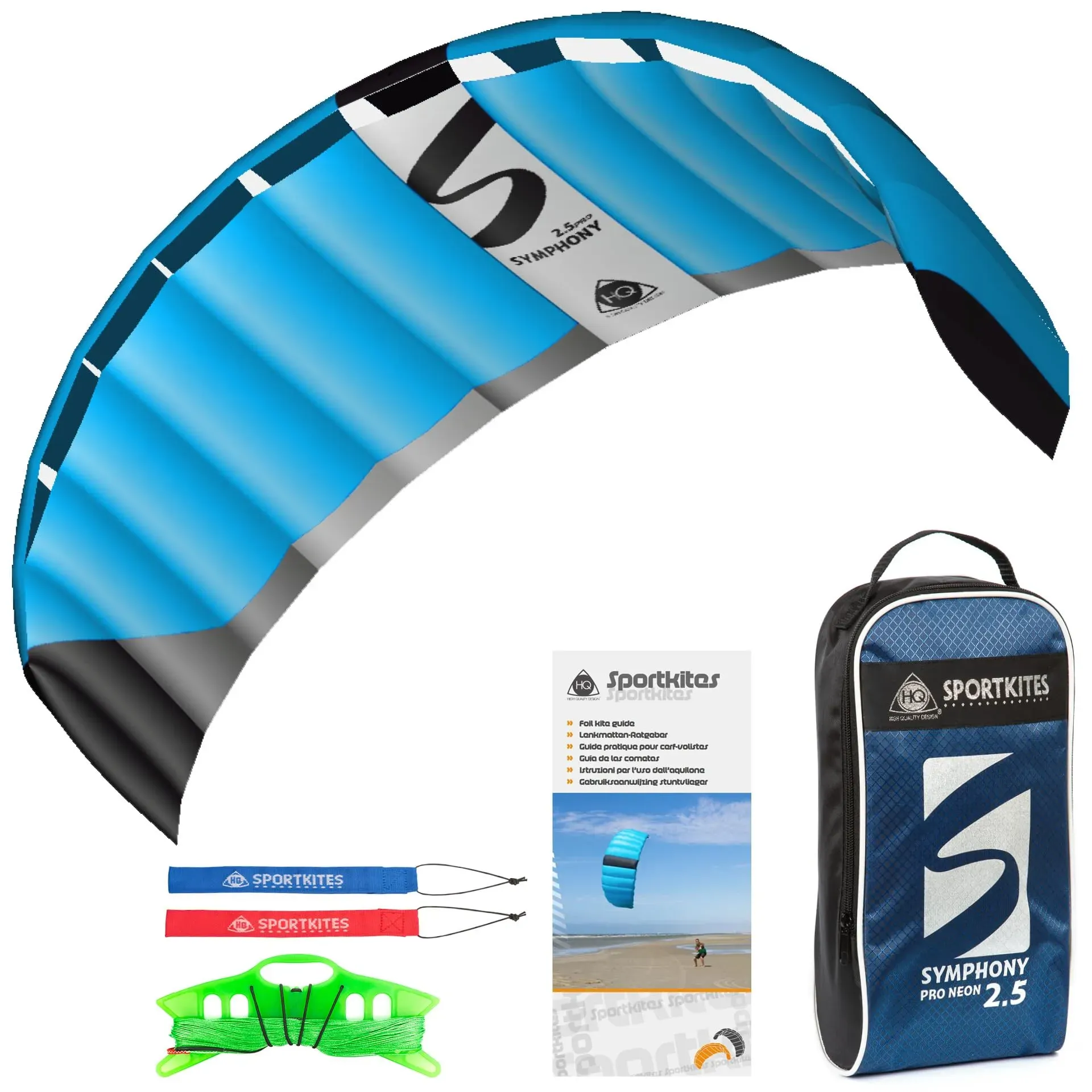 Gewöhnlich versandfertig in 2 bis 3 TagenHQ Design Lenkmatte Lenkdrache Symphony Pro Zweileiner Matte Drachen für Kinder und Erwachsene inkl. Dyneemaschnüre auf Winder+Schlaufen 2-6 Bft (2.5 Neon Blue)