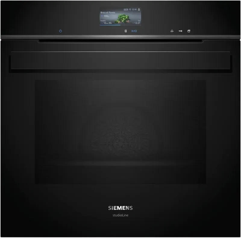 2 Händlerangebote bei billiger.de - EEK: A+ - Kategorie: Backöfen - Siemens - Für intuitive, gut ansprechende Touch-Navigation. Eine benutzerfreundliche Menüstruktur, die geschmeidige Touchbedienung und das kontraststarke Farbdisplay zeichnen das TFT-Full-Touchdisplay Plus, das Kontrollzentrum deines Backofens, aus. Die klare Führung durch das umfassende Menü hilft dir dabei das volle Potenzial deines Backofens zu entfalten. Automatisch perfekt zubereitete Mahlzeiten. Mit unseren vorinstallierten automatischen Back- und Bratprogrammen, musst du dir nie wieder Sorgen machen, dass dein Gericht nicht perfekt gelingt. Wähle einfach dein Gericht über das übersichtliche Touchdisplay aus und die Sensoren deines intelligenten Backofens kümmern sich um die perfekte Zubereitung. Aus den Empfehlungen kannst du deine favorisierte Zubereitungsart auswählen. Der Backofen übernimmt die Einstellungen automatisch und schaltet sich aus, sobald dein Gericht fertig ist. Siemens HR976GMB1, Medium, Elektrischer Ofen, 71 l, 71 l, 30 - 300 °C, Hydrolytisch + Pyrolytisch Siemens HR976GMB1. Ofengröße: Medium, Ofentyp: Elektrischer Ofen, Garraumvolumen Gesamteinheit: 71 l. Geräteplatzierung: Integriert, Produktfarbe: Edelstahl, Schwarz, Steuerung: Berührung. Uhrtyp: Elektronisch, Bedienung durch Apps unterstützt: Home Connect, Virtueller Assistent: Amazon Alexa. Energieeffizienzklasse: A+, Energieverbrauch (konventionell): 0,87 kWh, Energieverbrauch (erzwungene Konvektion): 0,69 kWh. ... ![]() homeofkitc hen.shop Siemens StudioLine Siemens HR976GMB1 - iQ700, Backofen mit Dampfunterstützung, Schwarz, 60 x 60 cm, 5 Jahre Garantie!