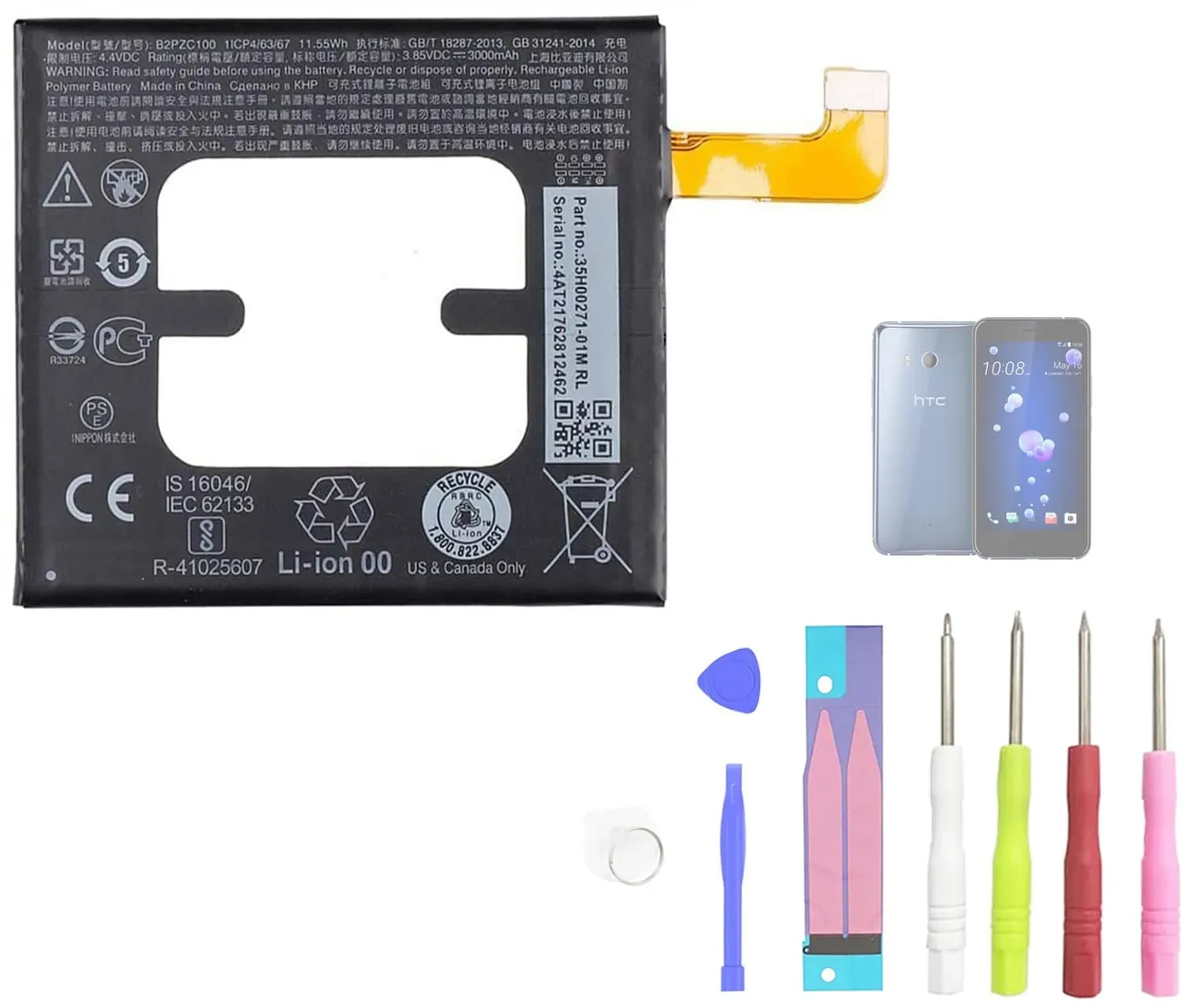 Auf Lager Versand durch AmazonFuworance 3000 mAh 3,85 V B2PZC100 Akku kompatibel mit HTC 2PZC, 2PZC100, 601HT, U11, U11 TD-LTE, U-3f, U-3u, U-3w, 35H00271-00M Handy-Akku mit Reparatur-Sets