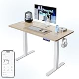 Auf Lager Versand durch AmazonHUANUO KI-gesteuerter Elektrischer Stehschreibtisch mit Smarter APP, Funktioniert mit Alexa & Google, Höhenverstellbar, 6 Speicherstufen, Sitz-Erinnerung, Ergonomisch, 80CM, Licht Wulnut