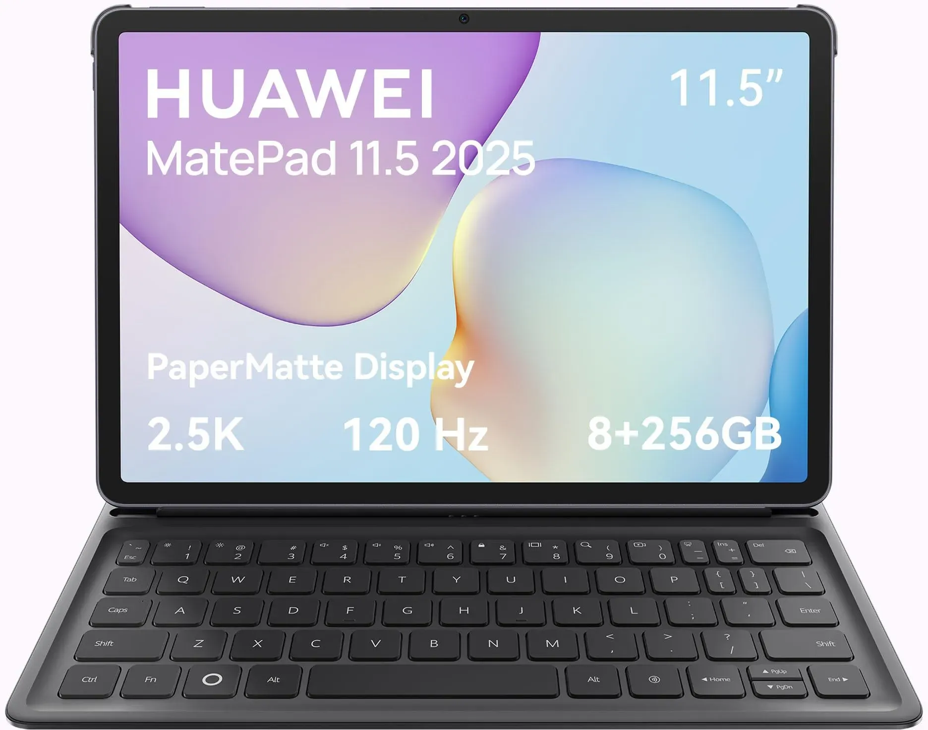 Kategorie: Tablet PCs - Huawei - GTIN:6942103166709 - [PaperMatte Display]: HUAWEI MatePad 11,5' (2025) Tablet mit 2.5K PaperMatte Display und 120 Hz für ein besonders augenschonendes Seherlebnis. Die innovative Technologie reduziert bis zu 99 % der Lichtstörungen und 60 % der Bildschirmreflexionen für klare Sicht selbst bei direkter Sonneneinstrahlung. Das Seitenverhältnis von 3:2 und das schlanke Design mit schmalen Rändern machen das MatePad zur idealen Wahl für Entertainment, Lernen und Gaming. [Lesen & Schreiben wie auf Papier]: Erkunde das Resource Center und wähle aus einer Vielzahl an Covern, Stickern und Papiervorlagen in HUAWEI Notes, um dein ganz persönliches Notizbuch zu gestalten. Dank der One-Touch-Split-Screen-Funktion kannst du mit nur einem Fingertipp zwei Inhalte nebeneinander öffnen und gleichzeitig Notizen machen. [Erlebe mobiles Arbeiten]: Mit dem HUAWEI Smart Keyboard arbeitest oder lernst du überall effizient dank präziser und reaktionsschneller Tastenanschläge wird das Bearbeiten von Tabellen oder Präsentationen unterwegs zum Kinderspiel. [Bis zu 14 Stunden Videowiedergabe]: Das elegante Unibody-Design aus Metall ist nur 6,1 mm dünn und wiegt gerade einmal 515 g und dennoch steckt darin ein beeindruckender 10.100 mAh Akku mit 40W SuperCharge. Genieße bis zu 14 Stunden Videowiedergabe am Stück. Und mit nur 30 Minuten Schnellladen startest du mit genug Energie für einen ganzen Vormittag vollem Entertainment. [Starke Performance für Entertainment]: Das ... Das PaperMatte Display reduziert Reflexionen und ist ideal für längere Lesesessions. ![]()