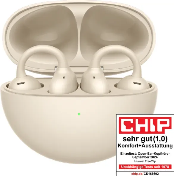 23 Händlerangebote bei billiger.de - Kategorie: Kopfhörer - Huawei - Die HUAWEI FreeClip haben ein C-Bridge-Design, das ihnen ein sehr elegantes Aussehen verleiht und gleichzeitig sehr leicht ist. Da sie ein Open-Ear-Design haben, lassen sie die Ohren atmen und können viel länger verwendet werden.Eigenschaften:C-Bridge-Design:- Die neuen HUAWEI FeeClip sind austauschbar, mit selbstanpassenden linken und rechten Audiokanälen, d. h. Sie können jeden Ohrhörer in jedem Ohr tragen. Außerdem wiegen sie jeweils nur 5.6 Gramm. Sie haben verschiedene Zuverlässigkeitstests bestanden und bestehen aus einer leistungsstarken Ni-Ti-Formgedächtnislegierung, die sich perfekt an die meisten Ohren anpasst. Sie sind das Sportmodell der Huawei FreeBuds.Anrufe mit KI:- Dank seines hochempfindlichen 10.8-mm-Doppelmagnettreibers liefert der HUAWEI FreeClip eine hervorragende Klangqualität und klare Gesangsdarstellung. Darüber hinaus wird der Schallverlust durch das ausgeklügelte inverse Schallwellensystem, das in die Akustikkugel integriert ist, minimiert. Das bedeutet, dass der Schall präzise an den Gehörgang übertragen wird.- Auf der anderen Seite integriert es Mikrofone, die es Ihnen ermöglichen, Anrufe zu tätigen. Um klarere Ergebnisse zu erzielen, arbeitet dieses Mikrofonsystem mit einem mehrkanaligen Deep Neural Network (DNN)-Algorithmus, um Stimmen von Umgebungsgeräuschen zu unterscheiden. Das Beste aus Sportkopfhörern, die gut klingen und gleichzeitig zum Telefonieren verwendet werden ... Media Markt bietet die FreeClip in Beige für 132.99 Euro an, was ein gutes Preis-Leistungs-Verhältnis darstellt. ![]() ![]() HUAWEI FreeClip True Wireless, Open-ear Kopfhörer Beige