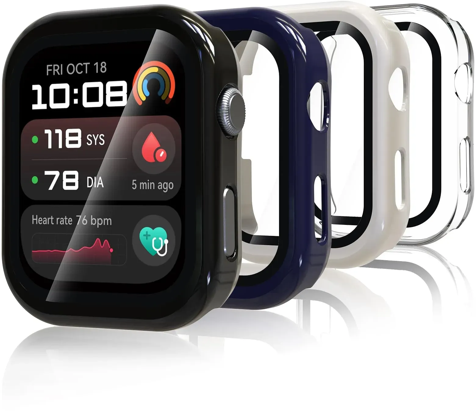 Auf Lager Versand durch AmazonBigqin 4 Stück Schutzhülle Kompatibel mit Huawei Watch D2, Hart PC Hülle mit Displayschutzfolie, HD Case Cover mit gehärtetem Glas - Weiß/Schwarz/Blau/Transparent