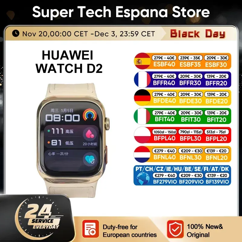 Verfügbarkeit: 1-3 Werktage - Kategorie: Smartwatches - Huawei - GTIN:6942103131417 - HUAWEI Watch D2 Smartwatch €” 1,82' AMOLED-Display, Ambulante 24h-Blutdruckmessung, schlankes Design (Schwarz)Elegantes Design & brillantes DisplayDie HUAWEI Watch D2 verbindet ein leichtes, schlankes Design mit einem gestochen scharfen 1,82' AMOLED-Display. Das edle Gehäuse in Schwarz und das flache Profil machen die Smartwatch zum stylishen Begleiter für Alltag und Sport. Dank des klaren Displays sind Benachrichtigungen, Anrufe und Musiksteuerung jederzeit gut lesbar €” ideal für Nutzer, die Design und Funktionalität erwarten.Umfassendes GesundheitsmanagementDie Watch D2 bietet ein komplettes Set an Gesundheitsfunktionen: Ambulante 24h-Blutdruckmessung, präzise EKG-Messung, Blutsauerstoff (SpO2), kontinuierliche Herzfrequenz- und Stressüberwachung sowie Schlafatmungsmonitoring. Diese Features ermöglichen ein detailliertes Tracking deiner Vitaldaten und unterstützen einProaktives Gesundheitsmanagement. Ideal für Anwender, die ihre Werte laufend beobachten möchten.Smarter Lifestyle & KonnektivitätDie HUAWEI Watch D2 bietet zahlreiche smarte Lifestyle-Funktionen: Bluetooth-Anrufe, Musik abspielen, Benachrichtigungen und schnelle Antworten. Die Uhr ist kompatibel mit iOS & AndroidTM und lässt sich einfach koppeln. über die Gesundheits-Community-Funktionen kannst du Aktivitätsdaten teilen und dich mit Gleichgesinnten vernetzen €” optimal für Motivation und ... Dieses Angebot von AliExpress für 455.71 Euro ist eine der teureren Optionen, bietet aber möglicherweise eine spezifische Konfiguration oder einen schnelleren Versand. ![]() ![]() Huawei Watch D2 Smartwatch