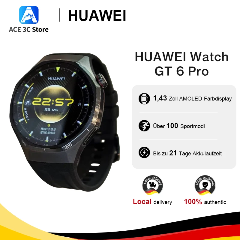 Huawei - HUAWEI Watch GT 6 Smartwatch 46mm, GPS, AMOLED-Display, bis zu 21 Tage Akkulaufzeit, Radfahren, über 100 Sportmodi, kompatibel mit Android. - bei de.aliexpress.com - aus Yadore Produktdaten Diese Huawei Watch GT 6 Pro bietet erweiterte Funktionen wie GPS und EKG-Monitoring zu einem wettbewerbsfähigen Preis. ![]() HUAWEI Watch GT 6 Pro 46mm GPS Smartwatch 1,47 Zoll AMOLED Farbdisplay Bis zu 21 Tage Akkulaufzeit