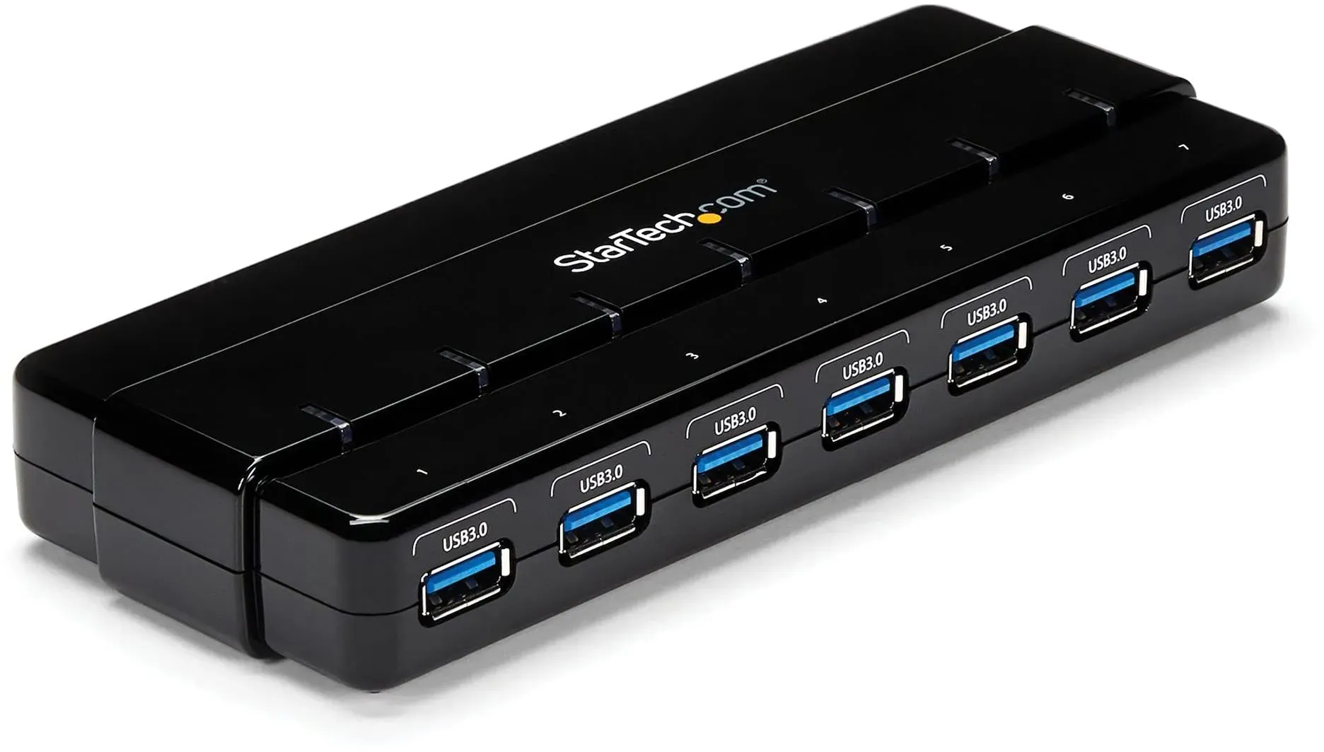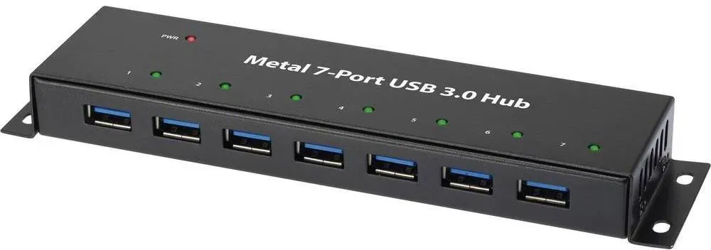 Verfügbarkeit: 1-3 Werktage - Kategorie: USB-Hubs - Renkforce - GTIN:4016138969566 - Dieser 7-Port USB 3.0 Hub ist wegen seines Metallgehäuses sehr gut abgeschirmt und dadurch die optimale Lösung für den Einsatz in der Industrie. Ausserdem ist er unter dem Tisch oder an der Wand montierbar. Somit herrscht Ordnung am Arbeitsplatz. Diese professionelle Befestigung sorgt ausserdem dafür, dass zum Anstecken von USB-Kabeln nur eine Hand benötigt wird. SuperSpeed USB 3.0 macht Ihre Datenübertragung jetzt so richtig schnell. Verbinden Sie USB-Festplatten, Digitalkameras oder Camcorder via USB 3.0 mit Ihrem Computer. Grosse Datenmengen wie HD-Filme und Fotos übertragen Sie innerhalb weniger Sekunden mit Geschwindigkeiten von bis zu 5 Gbit/s. Im Vergleich zu USB 2.0 nutzen Sie ab sofort die zehnfache Geschwindigkeit. Natürlich ist der Hub auch abwärtskompatibel zu älteren USB-Generationen. Das starke Netzteil im Lieferumfang sorgt mit einer Stromversorgung von 5V / 4A dafür, dass alle angeschlossenen Geräte optimal mit Strom versorgt werden, auch bei stromhungrigen USB-Geräten. Besonderheit: zur Wandmontage, Metallgehäuse. - 63,20 Euro bei Galaxus.de - gefunden von billiger.de Der StarTech.com 7 Port USB 3.0 Hub ist eine zuverlässige Lösung mit Stromanschluss und Kabel für stabile Verbindungen. ![]() ![]() StarTech.com 7 Port USB 3.0 SuperSpeed Hub - USB 3 Hub Netzteil / Stromanschluss und Kabel - Schwarz