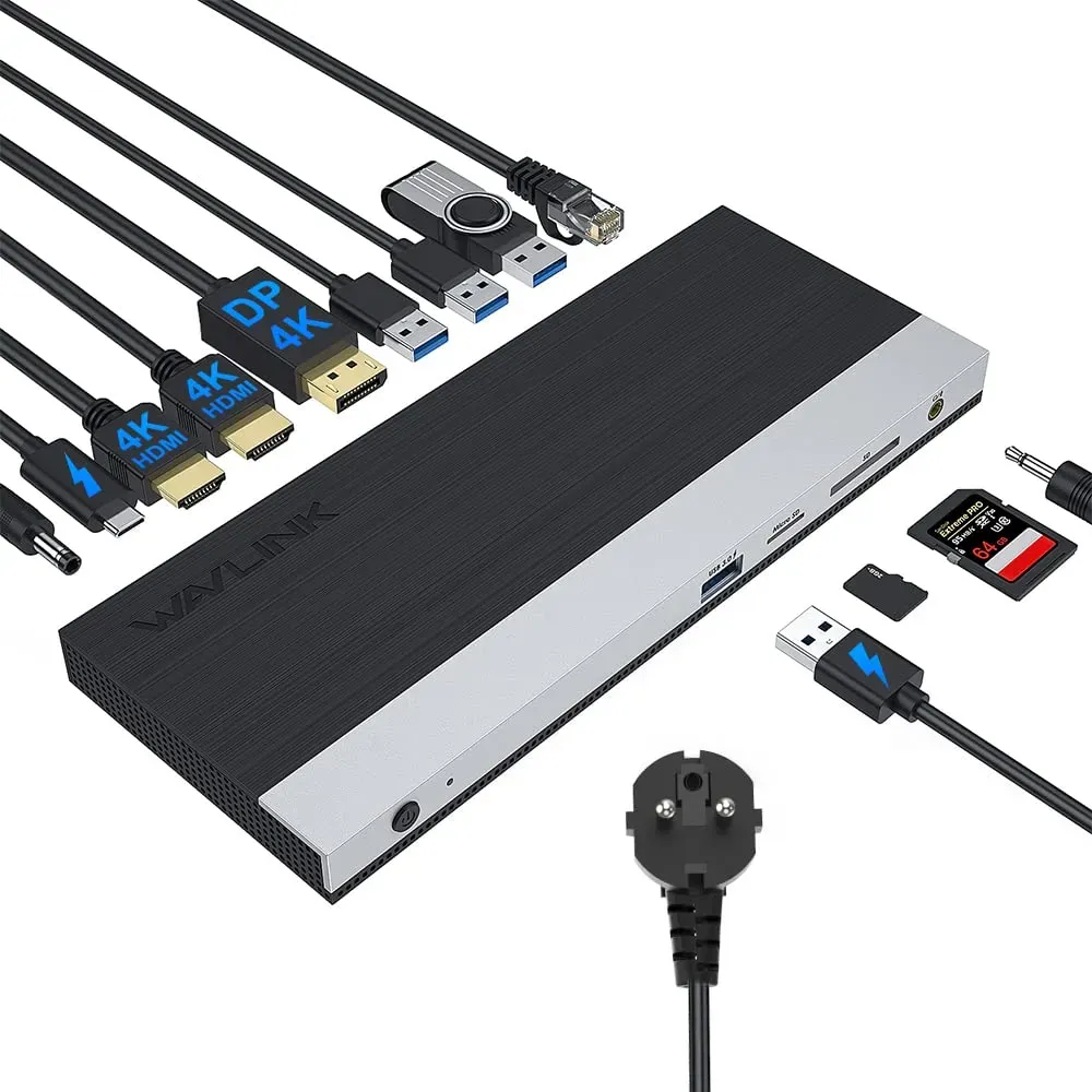 Verfügbarkeit: Auf Lager - Kategorie: USB-Hubs - vangree - GTIN:0729162458664 - 17-IN-1 USB 3.2 Hub mit Netzteil: Der VANGREE USB-Hub bietet 10× USB-A 3.2 Ports, 3× QC3.0-Schnellladeports (24W), 2× USB-C 3.2 Ports + SD/TF-Kartenleser. Hinweis: Die 3 Schnellladeports unterstützen keine Datenübertragung. 10Gbps Hochgeschwindigkeits-Datenübertragung: Mit 10 USB-A 3.2 Ports (bis zu 10Gbps) €“ doppelt so schnell wie herkömmliche USB 3.2 Hubs. Jeder Port liefert bis zu 5V/1.5A, ideal zum Laden von USB-Geräten. 96W UL-zertifiziertes Netzteil: Der leistungsstarke 96W-Adapter ermöglicht schnelles Laden mehrerer Geräte gleichzeitig €“ eine zuverlässige Stromversorgung für Ihre Elektronik. 3× QC 3.0-Schnellladeports (24W pro Port): Unabhängige Quick Charge 3.0-Ports (24W) für ultraschnelles Laden mit USB-A/USB-C-Kompatibilität. SD/TF-Kartenleser (bis zu 104MB/s Lesen, 80MB/s Schreiben): Integrierter Dual-Slot-Kartenleser für SD- und MicroSD-Karten mit hohen Transferraten €“ perfekt für große Dateien. überspannungs- & überstromschutz: Schützt den Hub und angeschlossene Geräte vor Stromspitzen und Spannungsschwankungen für sichere Datenübertragung. Universelle Kompatibilität: Kompatibel mit MacBook Pro/Air, iMac, XPS, Surface Pro und mehr. Unterstützt Windows XP/7/8/10/11, Linux, macOS 10.3+. Universelle Kompatibilität: Kompatibel mit MacBook Pro/Air, iMac, XPS, Surface Pro und mehr. Unterstützt Windows XP/7/8/10/11, Linux, macOS 10.3+. - ... Diese WAVLINK Docking Station bietet Triple Display, 100W DC Netzteil und eine Vielzahl von Anschlüssen für anspruchsvolle Arbeitsumgebungen. ![]() ![]() USB C Docking Station mit 100W DC Netzteil, WAVLINK Triple Display DockingStation USB C Hub mit HDCP, Dual HDMI, DisplayPort, Gigabit Ethernet, 3 USB, BC1.2 USB, SD/TF, Audio Port für Windows, Mac