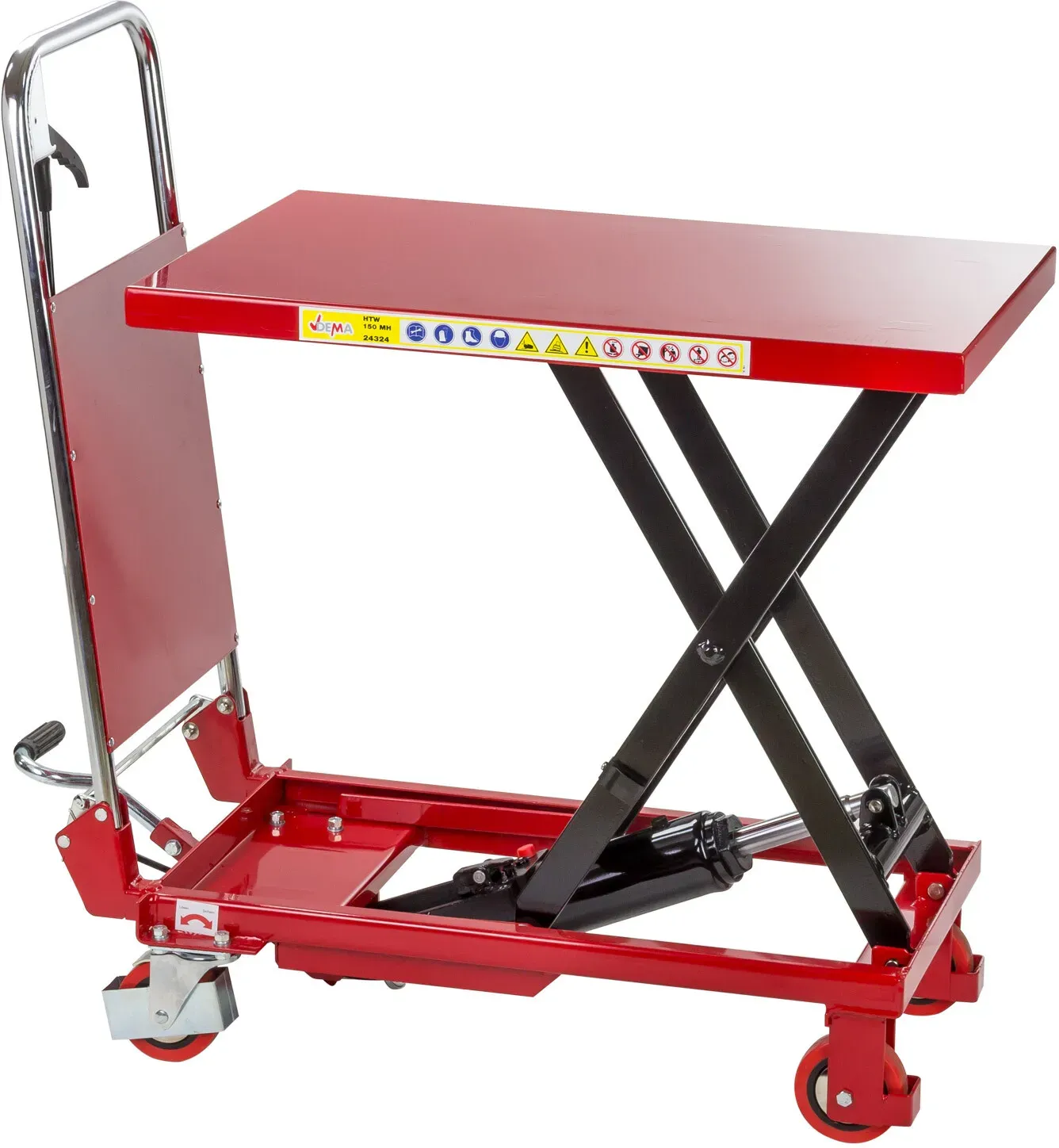 2 Händlerangebote bei billiger.de - Kategorie: Transportgeräte & Rampen - DEMA - Hydraulischer Hubtischwagen / Hubwagen / Hubtisch HTW150 bis 150kg Der Dema hydraulische Hubtischwagen HTW150 ist ein stabiles Gerät aus Stahl, das bis zu 150 kg heben kann. Mit dem hydraulischen Stempel und der Parallelführung kann der Hubtisch einfach und präzise durch Handhebel heruntergelassen werden. Der Hubtischwagen verfügt über Lenkrollen mit Bremsen für eine sichere Handhabung und eine Sicherungs-Arretierung gegen unbeabsichtigtes Ablassen, die auch eine zylinderschonende Parkstellung bis zu einer Höhe von ca. 70 cm bietet. Der Hubtischwagen ist wendig und leicht zu handhaben, was ihn ideal für Werkstätten, Lagerhallen und andere Arbeitsbereiche macht. Produktmerkmale: Wendig Prima Handling Stabile Stahlkonstruktion Hydraulischer Stempel mit Parallelführung Einfaches, feinfühliges und präzises Herunterlassen des Hubtisches durch Handhebel Lenkrollen mit Bremse Sicherungs-Arretierung gegen unbeabsichtigtes Ablassen - bietet zugleich zylinderschonende Parkstellung bis in ca. 70 - GTIN:4031765243247 Ein sehr preiswerter hydraulischer Scherenhubtischwagen mit 230 kg Tragfähigkeit, der sich gut für den Einstieg oder kleinere Aufgaben eignet. Manomano.d e