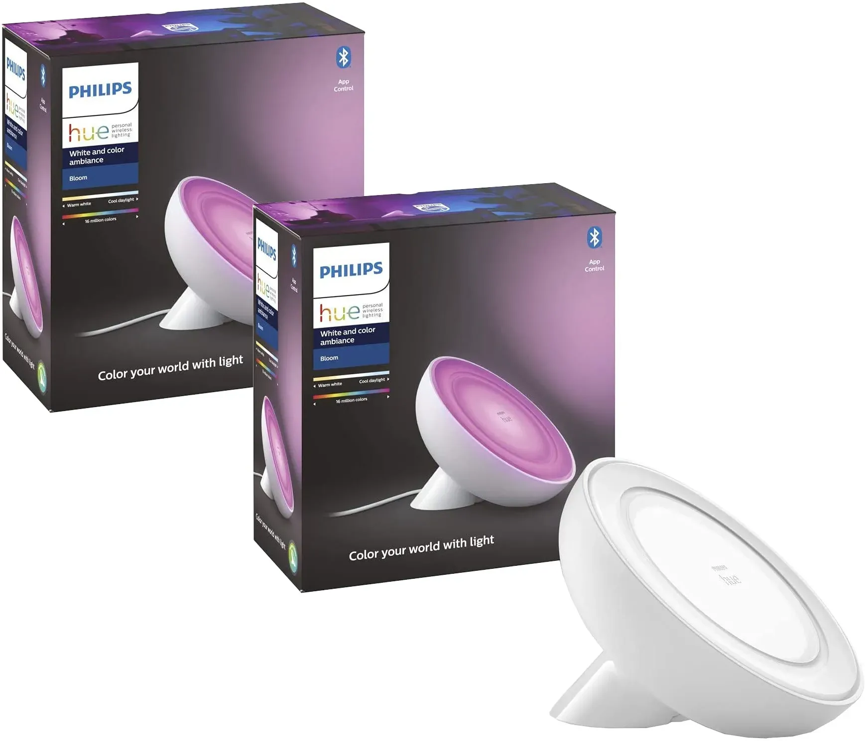 Kategorie: Tischleuchten - Philips - GTIN:8718699770983 - Philips Hue Bloom LED Tischleuchte weißKompakte Tischleuchte, als Einzelleuchte für farbiges Licht oder als Akzentleuchte innerhalb eines vorhandenen - 74,00 Euro bei TECHNIKdirekt - gefunden von billiger.de Dieses Angebot im Amazon Marketplace bietet die beliebte Philips Hue Bloom Tischleuchte in Weiß mit allen smarten Funktionen zu einem fairen Preis. ![]() ![]() Philips Hue White & Color Ambiance Bloom Tischleuchte (500 lm), dimmbare Tischleuchte für das Hue Lichtsystem mit 16 Mio. Farben, smarte Lichtsteuerung über Sprache oder App, weiß