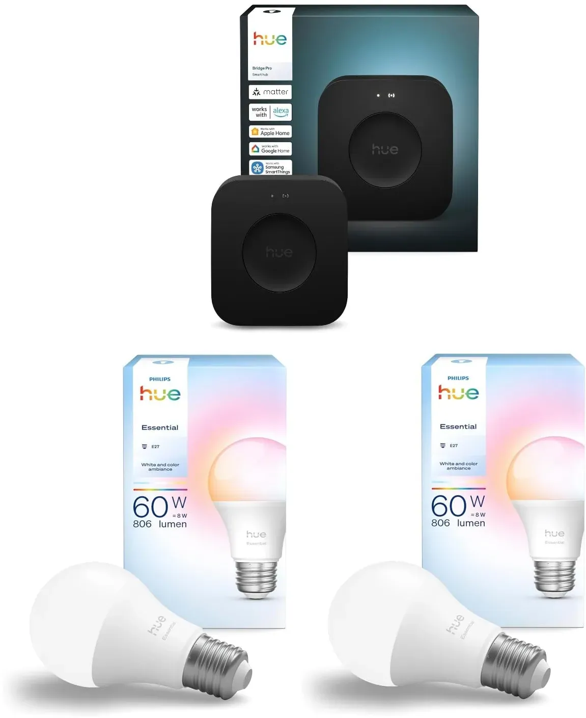![]() ![]() Philips Hue Starter-Set White and Color Ambiance - Bridge Pro + 2er-Set E27 Lampen - Weiß
