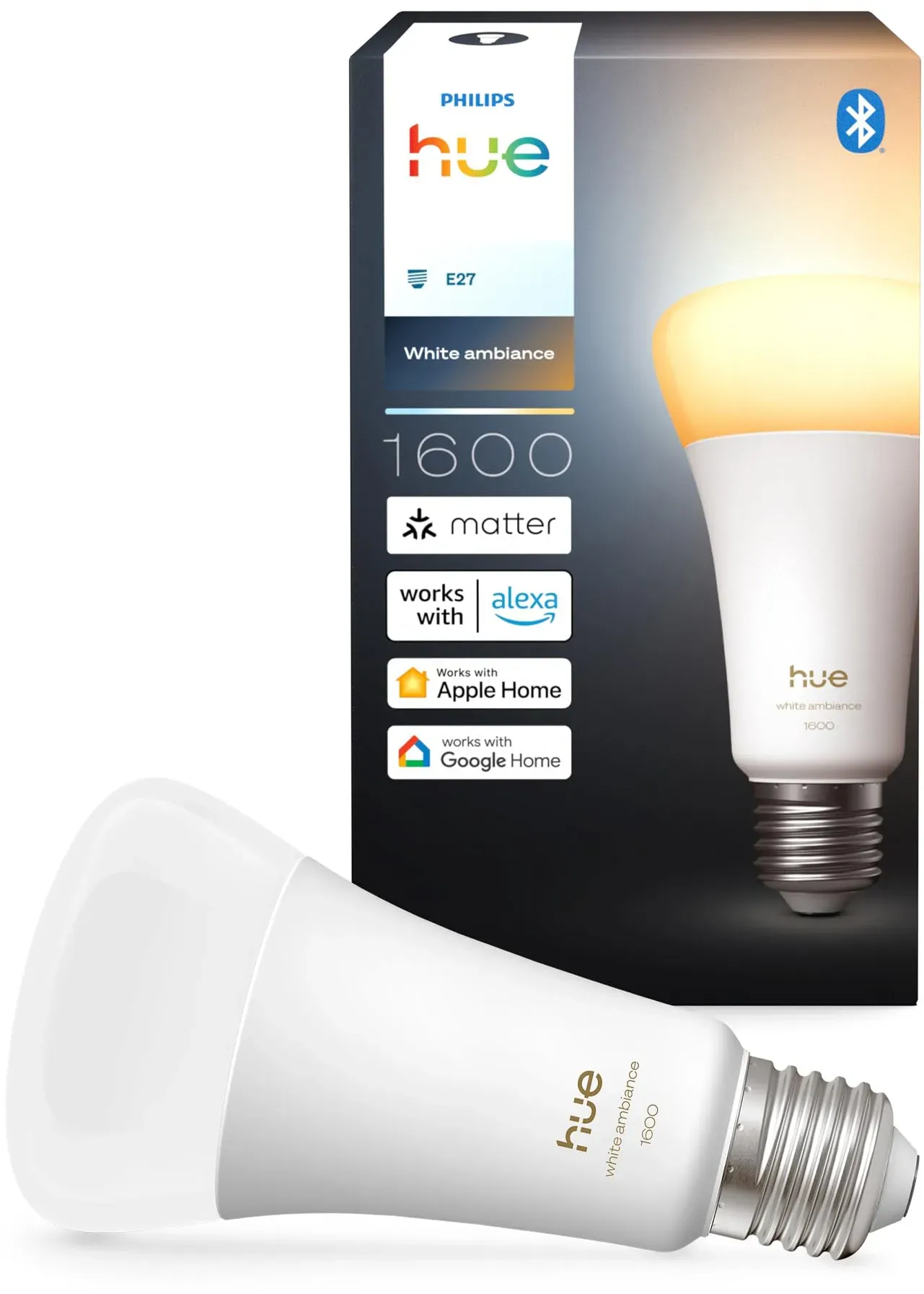 Heimwerkerbedarf Elektrobedarf Heim- & Gebäudeautomatisierung Glühbirnen - EAN:8719514288195 - Die Vorteile des Produkts im Überblick: Steuerung via Smartphone Verschiedene Weißtöne Keine Bridge nötig Kompatibel mit Sprachassistenten Erweiterbar mit Bridge - gefunden von Kelkoo ![]() ![]() Philips Hue White E27 White Ambiance Einzelpack 1600lm 100W