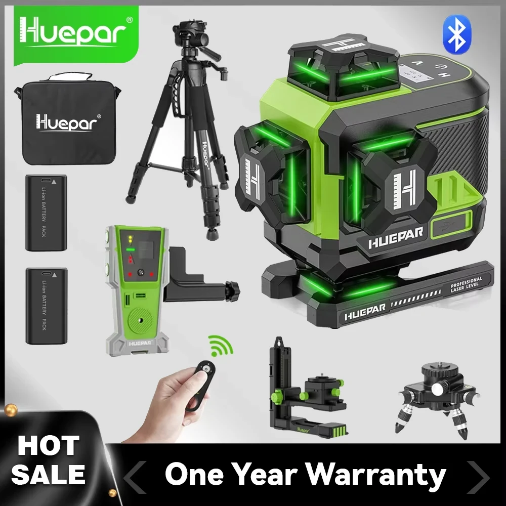 Auf Lager Versand durch AmazonHuepar 16 Linien Selbstnivellierender Laser Level 4x360° Kreuzlinienlaser mit Empfänger - LCD-Bildschirm, 4D Bluetooth Grüner Strahl Fliesenbodenlaser, 360° Horizontaler/Vertikaler Laser S04-5RG