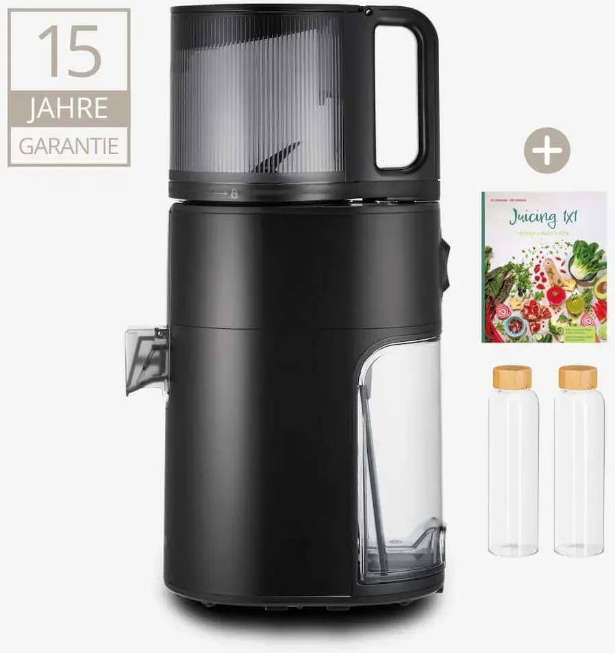 Kategorie: Entsafter - Hurom - GTIN:8809686401789 - mega 2l kapazität: Die mega hopper slow juicer Saftpresse bietet einen Einlass, der dreimal größer ist als bei regulären Modellen (45 mm), und ermöglicht das Einführen ganzer Früchte wie äpfel und Orangen ohne vorheriges Zerschneiden. Mit einem Fassungsvermögen von 2 Litern können Sie Obst und Gemüse in einem Durchgang extrahieren, während ein zusätzlicher Fülltrichter das Nachfüllen von Zutaten während des Betriebs ermöglicht ideal auch als mini Saftpresse. innovatives design: Die elektrische Saftpresse h400 überzeugt mit einem herausragenden Design. Ein integriertes Messgerät an der Vorderseite ermöglicht Ihnen eine intuitive Kontrolle des Füllstands Ihres Safts und betont gleichzeitig die intensiven Farben Ihres Getränks. vorbereitungsfunktion: Dieser slowjuicer schneidet Lebensmittel vor dem Zerkleinern und Entsaften, was eine effiziente und zeitsparende Zubereitung ermöglicht. Dank einer großzügigen Schnittschale von 13,6 cm Breite können Sie ganze Lebensmittel mühelos einfüllen, ohne sie vorher mühsam zerkleinern zu müssen ideal als elektrische Zitrus- und Tomatenpresse. leiser motor & 15-jährige Mit einem 150 w Niedrigverbrauchsmotor arbeitet diese Saftmaschine effizient und leise und ermöglicht mit 90 U/min eine schonende Extraktion Ihrer Zutaten. Genießen Sie die Gewissheit einer 15-jährigen und die Sicherheit, dass dieses Gerät rt frei von BPA ist. Diese Saftmaschine ist auch als Apfelsaftpresse und ... Ebenfalls von Amazon Marketplace Kitchen für 699 Euro, ist dies eine gute Wahl für den Hurom H400 in Schwarz mit den gleichen praktischen Eigenschaften. ![]() ![]() Hurom Slow Juicer | Entsafter Gemüse und Obst | H400 | Leicht zu Reinigen & Leiser Motor Elektrischer Entsafter mit großem Behälter und Siebfilter 2L | 150 Watt | BPA Frei | Schwarz
