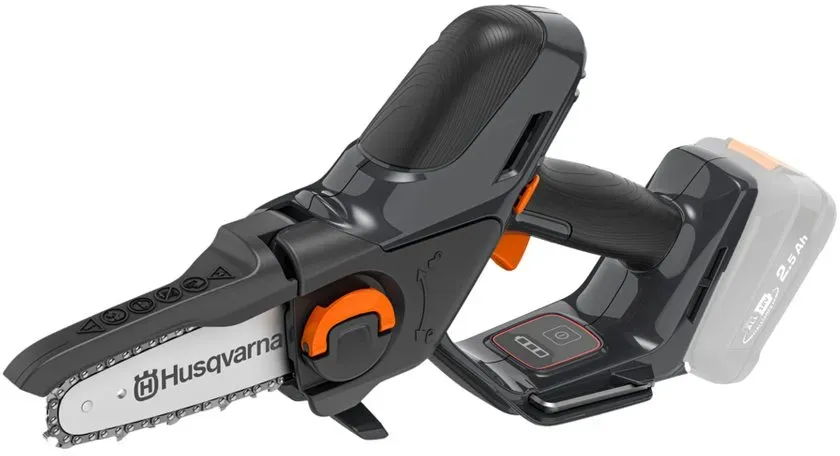 lieferbar-in 3-4 Werktagen bei dirHusqvarna Akku-Kettensäge Aspire P5-P4A, 12 cm Schwertlänge, klein, kompakt, Astsäge für äste bis 75 mm grau