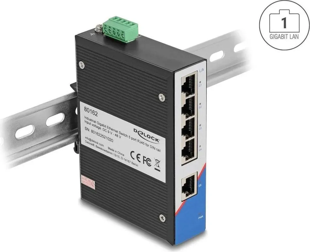 Kategorie: Netzwerk-Switches - MokerLink - GTIN:0786118199910 - Dieser Netzwerk-Switch umfasst 4 Gigabit-PoE-Ethernet-Ports und 1 Gigabit-Uplink, alle Ports unterstützen eine Rate von 10/100/1000 Mbit/s, eine Schaltkapazität von bis zu 14 Gbit/s und eine höhere Datenübertragungsleistung Der Poe-Port 1-4 unterstützt IEEE802.3af/at-Standardprotokoll, kann mehrere Poe-Geräte wie POE-Kameras, Poe-APs usw. anschließen. Bitte beachten Sie, dass passives 24V-Poe nicht unterstützt wird Die Schale besteht aus einer Aluminiumlegierung in Industriequalität, die robuster ist, Oberflächenrillendesign, bessere Wärmeableitung, integriertes DIN-Schienenmontage-Kit, Installation und Demontage sind sehr einfach Schutzgrad IP40, Arbeitstemperatur -40~75 C (-40~185 F), super Robustheit, Blitzschutz, Antistatik- und überlastschutz, Anpassung an verschiedene raue Umgebungen Duales Netzteil, automatische Fehlerumschaltung, Anti-Reverse-Anschluss schadet dem Gerät nicht, höhere Zuverlässigkeit, ausgestattet mit einem UL-zertifizierten Netzteil, kann ohne zusätzlichen Kauf verwendet werden Unterstützt Auto-Negotiation, Plug-and-Play, keine Konfiguration erforderlich, CPU mit niedrigem Stromverbrauch, kein Lüfter leiser Betrieb, grüne Energieeinsparung, geeignet für verschiedene Netzwerke wie Heimbüro, Computerraum, Lager, Fabrik, kompakte Steuerbox und andere Industrieszenarien mit Ethernet-Zugang - 79,99 Euro bei Amazon Marketplace CE - gefunden von billiger.de Ein solider 5-Port Gigabit Ethernet Switch von Delock für die Hutschiene, der eine gute Balance zwischen Preis und Leistung bietet. ![]() ![]() Delock Industrie Gigabit Ethernet Switch 5 Port RJ45 für Hutschiene - Schwarz