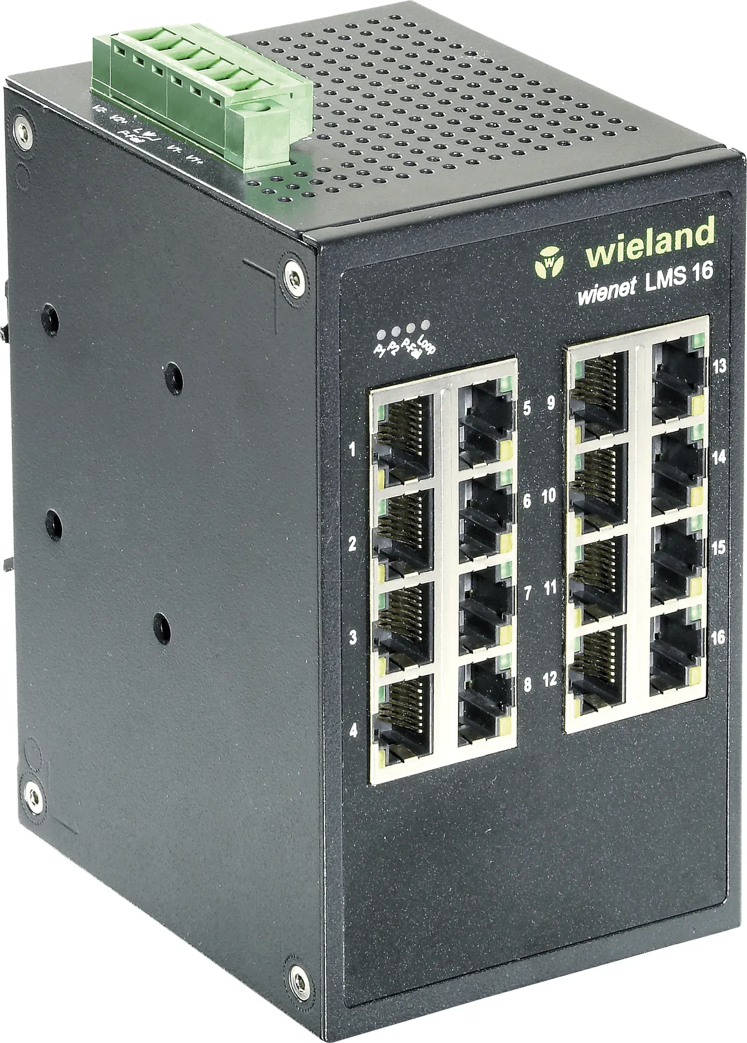 Kategorie: Sonstige Elektroinstallationsartikel - Weidmüller - GTIN:4050118028904 - Switch-Typ:UnmanagedSwitch-Ebene:L2Anzahl der basisschaltenden RJ-45 Ethernet Ports:6Basic Switching RJ-45 Ethernet Ports-Typ:Fast Ethernet (10/100)Anzahl installierte SFP Module:0Fast Ethernet (Kupfer)-Anschlüsse:6Anzahl Faseranschlüsse:2Optischer Kabelverbinder:SCNetzstandard:IEEE 802.3, IEEE 802.3u, IEEE 802.3xKupfer Ethernet Verkabelungstechnologie:10BASE-T, 100BASE-TXVollduplex:JaUnterstützung Datenflusssteuerung:JaAuto MDI/MDI-X:JaAuto-Negotiation-Funktion:JaEthernet-Kabel Verkablungstechnologie:100BASE-FXFibertyp:Multi-ModusWellenlänge:1300 nmRX Sensitivität:-32 dBLink-Budget:12 dBMAC-Adressentabelle:1024 EintragungenStore-and-Forward:JaDatenpaket-Pufferspeicher:0,064 MBProduktfarbe:Schwarz, OrangeGehäusematerial:AluminiumLED-Anzeigen:JaInternationale Schutzart (IP-Code):IP30DIN-Schienen-Montage:JaMittlere Betriebsdauer zwischen Ausfällen (MTBF):2428212 hUnterstützung für redundantes Netzteil:JaDC input Spannung:18 - 30 VBetriebstemperatur:-10 - 60 CTemperaturbereich bei Lagerung:-40 - 85 CBreite:50 mmTiefe:70 mmHöhe:115 mmGewicht:275 g:FCC Part 15, CISPR (EN55022) Class A, EN 61000-4-2 (ESD), Stage 3, EN 61000-4-3 (RS), Stage 3, EN 61000-4-4 (EFT), Stage 3, EN 61000-4-5 (surge voltage), Stage 3, EN 61000-4-6 (CS), Stage 3, EN 61000-4-8, EN 61000-4-11 UL/cUL, Class I, Division 2, Groups A, B, C and D, ATEX Zone 2 Ex nA IIC T4 Gc IEC 60068-2-32 UL508 IEC 60068-2-27 IEC 60068-2-6 RoHS ... Dieser Wieland Electric WIENET LMS 16-W Netzwerk Switch bietet eine hohe Portdichte für große Netzwerke auf der Hutschiene. ![]() ![]() Wieland Electric WIENET LMS 16-W Netzwerk Switch