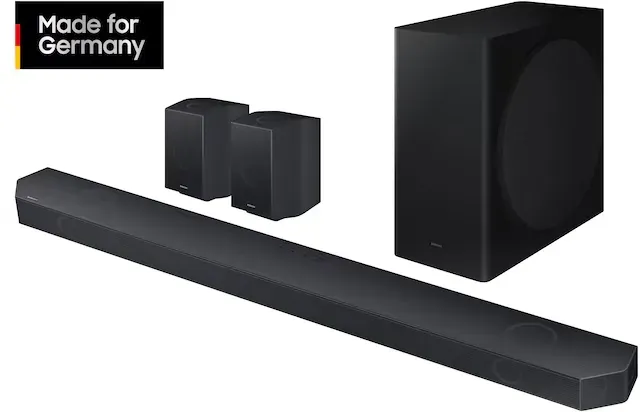 1 Händlerangebote bei billiger.de - Kategorie: Surround-Systeme - Samsung - Soundbar mit kinoreifem 9.1.4-Kanal-Surround-Sound mit 17 integrierten Lautsprechern und externem 8'-Subwoofer Surround-Sound-System mit nach oben abstrahlenden 2.0.2-Kanal-Rücklautsprechern für ein großartiges Heimkinogefühl Fantastischer 3D-Sound dank kabellosem Dolby Atmos und DTS:X Mit Q-Symphony zum perfekten Abstimmen von TV-Lautsprecher und Soundbar, SpaceFit Sound Pro für eindrucksvollen raumoptimierten Sound Lieferumfang: 1 x Samsung HW-Q935GD 9.1.4-Kanal Q-Soundbar für TV-Geräte, Bluetooth-Lautsprecher mit externem Subwoofer [2024] - GTIN:8806095427157 ![]() ![]() Samsung Q-Soundbar HW-Q935GD Surround System Schwarz Dolby Atmos, Bluetooth, High-Resolution Audio, WLAN, Wandbefestigung, Sprachsteuerung