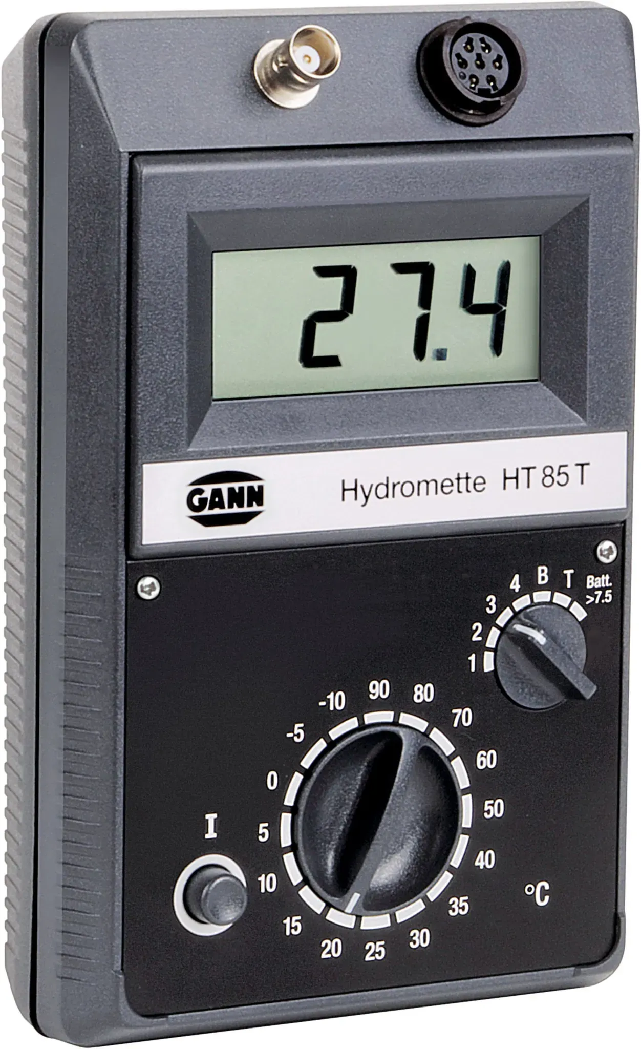 Kategorie: Temperaturmessgeräte - Gann - GTIN:4054773023939 - präziser, handlicher Thermo-Hydrometer mit abnehmbarem Feuchtestick, der separat überprüft und kalibriert werden kann Einhandbedienung großes 3-zeiliges LCD-Display für gleichzeitige Anzeige von Luftfeuchte, Lufttemperatur und Taupunkt wahlweise absolute Luftfeuchte oder Holzfeuchtegleichgewicht Speicherung der letzten 5 Messwerte für viele Anwendungsbereiche, wie z. B. Klimatechnik, Qualitätssicherung Weitere technische Eigenschaften: Luftfeuchtigkeit: 0-100% Lieferumfang: Messgerät, Kunststoffbox, 1 x 9V-Block-Batterie Ersatzbatterien siehe Art.-Nr. 4000 901 814 Hinweis zur Entsorgung von Batterien und Akkus Da wir Batterien und Akkus bzw. solche Geräte verkaufen, die Batterien und Akkus enthalten, sind wir nach dem Batteriegesetz (BattG) verpflichtet, Sie auf Folgendes hinzuweisen: Das Symbol des durchgestrichenen Mülleimers auf Batterien oder Akkumulatoren bedeutet, dass diese nach Verbrauch nicht im Hausmüll entsorgt werden dürfen. Sofern Batterien oder Akkumulatoren Quecksilber, Cadmium oder Blei enthalten, finden Sie das jeweilige chemische Zeichen (Hg, Cd oder Pb) unterhalb des Symbols des durchgestrichenen Mülleimers. Jeder Verwender von Batterien oder Akkumulatoren ist gesetzlich verpflichtet, alte Batterien und Akkumulatoren zurückzugeben. Sie können dies kostenfrei im Handelsgeschäft oder bei einer anderen Sammelstelle in Ihrer Nähe tun. Adressen geeigneter Sammelstellen in Ihrer Nähe können Sie von ... Ein hochwertiges Bau- und Holzfeuchte-Messgerät für anspruchsvolle Anwendungen. ![]() ![]() Gann Bau- und Holzfeuchte-Messgerät Hydromette HT 85 T