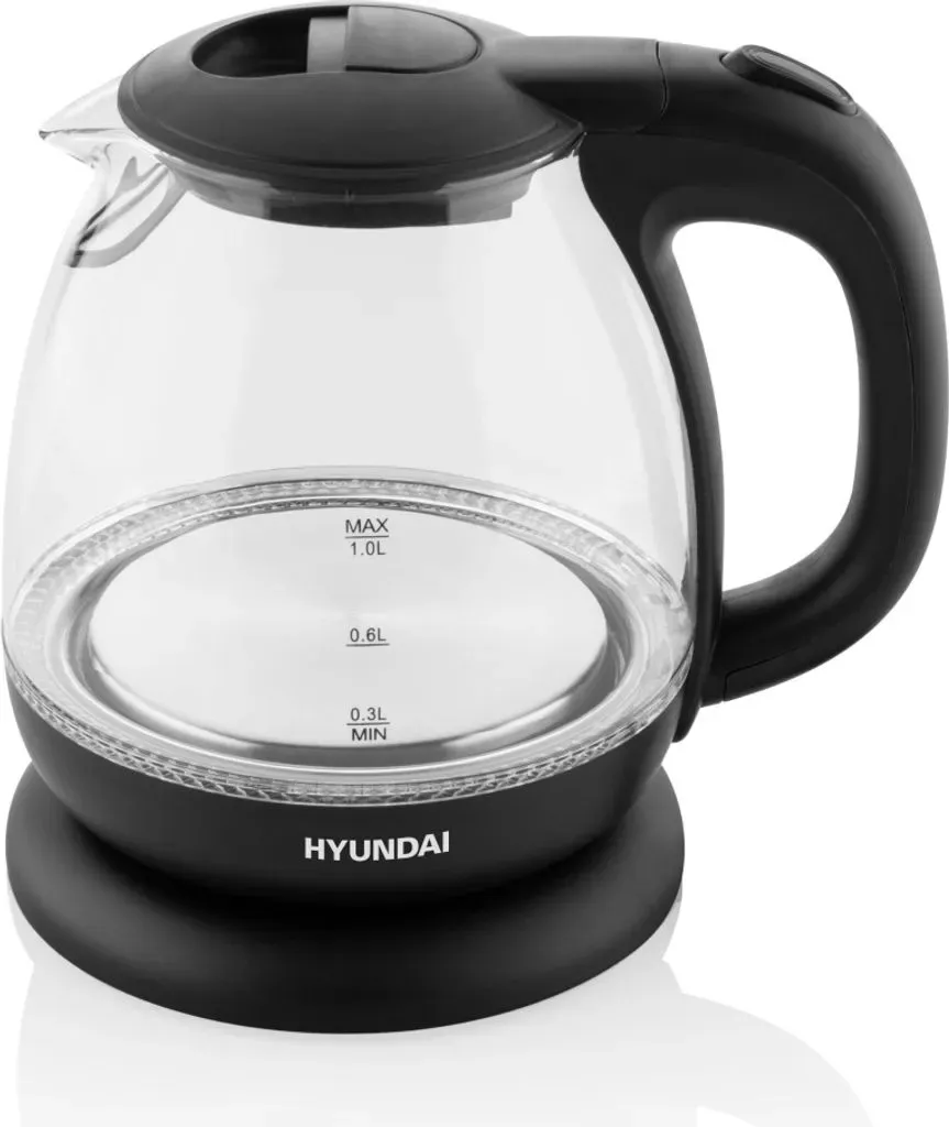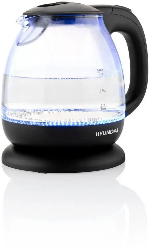 lieferbar-in 2-3 Werktagen bei dirETA Hyundai Wasserkocher VK101, 1 l, 1100 W, 1100 W, automatische Deckelöffnung und Abschaltung, Spirale für Kabel schwarz