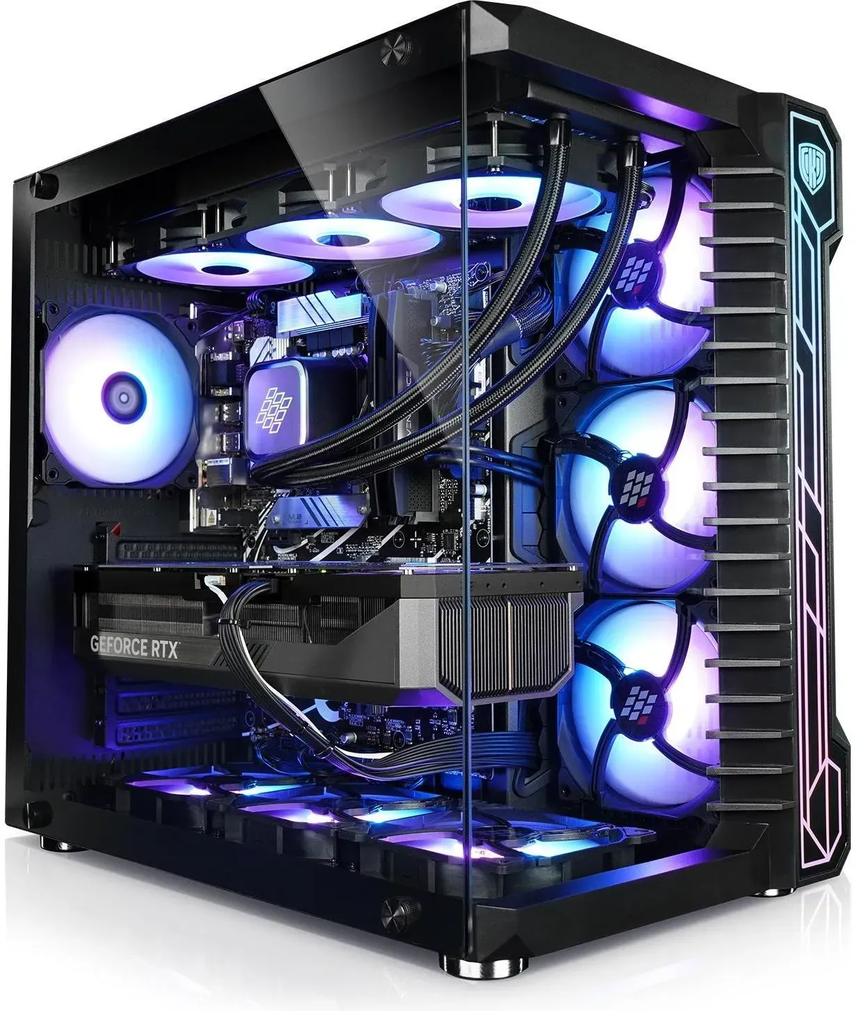 Kategorie: PCs - kiebel.de - GTIN:4099836012697 - kiebel.de Gaming PC Cube Crystal 14 Intel Core i5-14600KF, 32GB DDR5, NVIDIA RTX 5060 Ti 16 GB, 2TB SSD, Windows 11, Gaming PC [Design] Das futuristische Kraftpaket ist ein optisches Highlight. Die verglaste Front, Deckel und Seitenteil sorgen für einen exklusiven Look auf die hochwertigen Bauteile im Inneren. Dabei sorgt die 2-Kammer-Aufteilung im Innern für eine aufgeräumte Kabelführung und ein optimiertes Kühlsystem. Mit seinen würfelförmigen Abmessungen (28x 35x 40cm BxHxT) wirkt er auch auf dem Schreibtisch nicht überdimensioniert.[Performance] Das hochwertige Innenleben überzeugt. Perfekt aufeinander abgestimmten Komponenten zeigen Ihre besondere Gaming-Stärke in den Bereichen FullHD (1920x1080) und WQHD (2540x1440) im beliebten 144Hz Bereich. Maximale detailreiche Einstellungen für ein starkes Bilderlebnis ist dank üppigen Grafikkartenspeicher perfekt möglich. Mit diesem Gaming-Talent erwachen aktuellste Spiele erst richtig zum Leben.[Technik] Das System beinhaltet alle aktuellen Schnittstellen und Technologien wie Raytracing (grafisch beeindruckende Licht und Spiegeleffekte), 3xDisplay-Port und HDMI (für Mehrschirmbetrieb geeignet), schnelle USB3.2 (abwärtskompatibel zu USB3 und USB2), PCIe x4 M.2 (für die superschnelle NVME SSD Systemplatte), kabelgebundenes 2.5Gb Gaming-LAN und digitale Soundunterstützung für eine perfekte Klangwiedergabe.[Qualität] Das PC-System ist vorinstalliert mit Windows 11. Es ist eine ... Dieser Black Hole Gaming-PC bietet eine RTX 4070 und 32GB RAM, was ihn zu einer starken Option für High-End-Gaming macht. ![]() ![]()