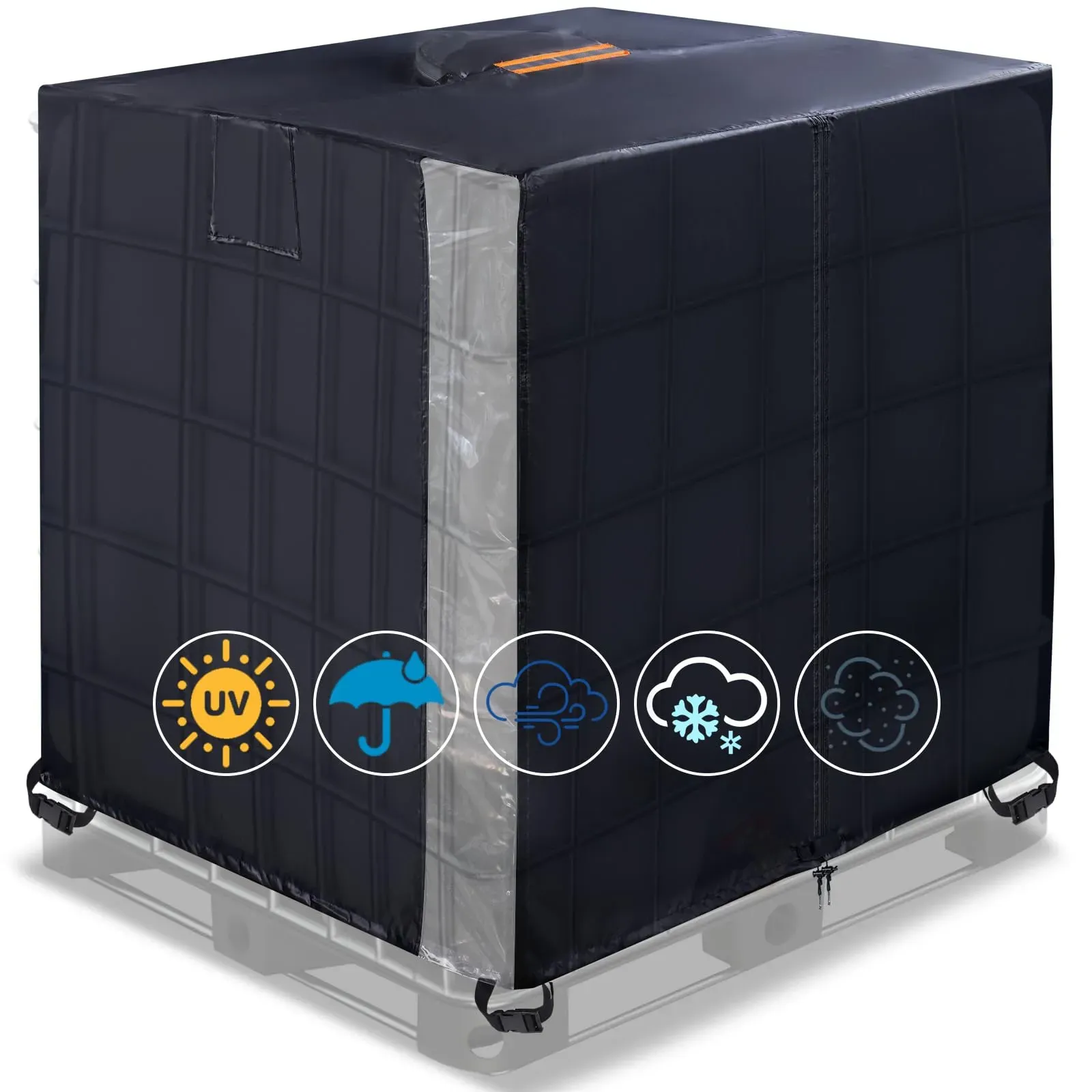 Auf Lager Versand durch AmazonIbc Tank Abdeckung, 1000L Ibc Container Cover, Abdeckplane für Wassertank, Schutzhülle Ibc Tank mit Sichtfenster, Schutzhaube Schutzplane für Regenwassertank Ibc Behälter(120 * 100 * 116cm)
