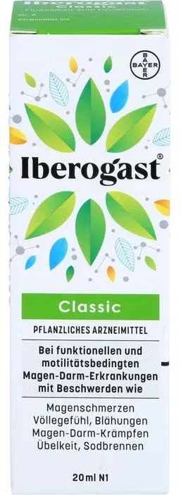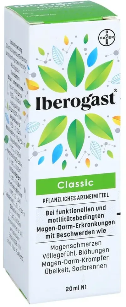 419,50 /l - Kategorie: Arzneimittel - Bayer - GTIN:4150165075347 - PZN:16507534 - Iberogast Classic Flüssigkeit zum Einnehmen 20 ml - von Bayer Vital GmbH Geschäftsbereich Selbstmedikation - Kategorie: Magenbeschwerden - Versand: 2,95 , ab 18 versandkostenfrei - 8,39 Euro bei healthii - gefunden von billiger.de Dieses Angebot ist das günstigste für die 20ml-Flasche bei DocMorris Apotheke. ![]() ![]() Bayer Iberogast Classic Flüssigkeit 20 ml