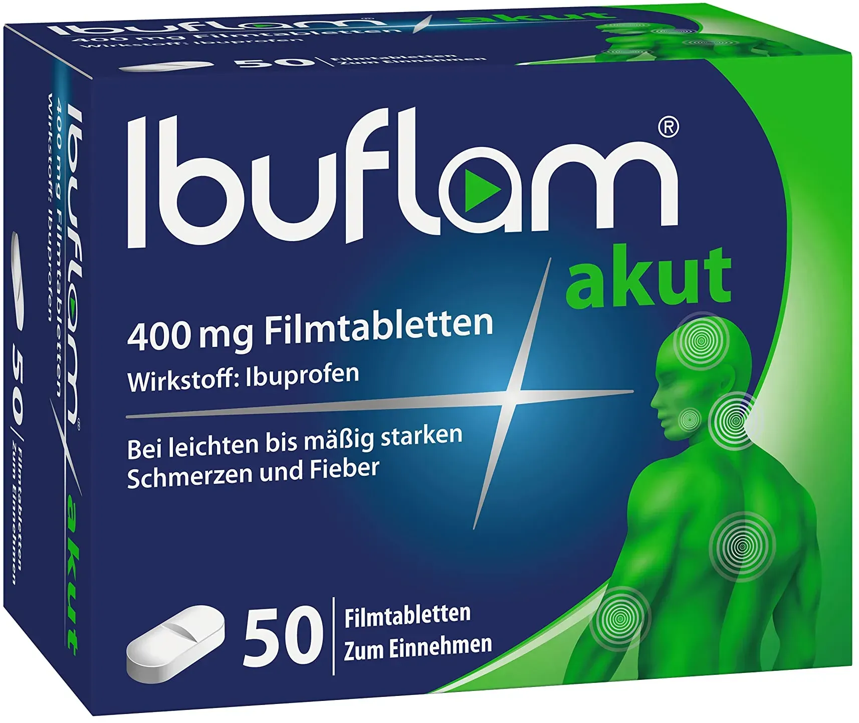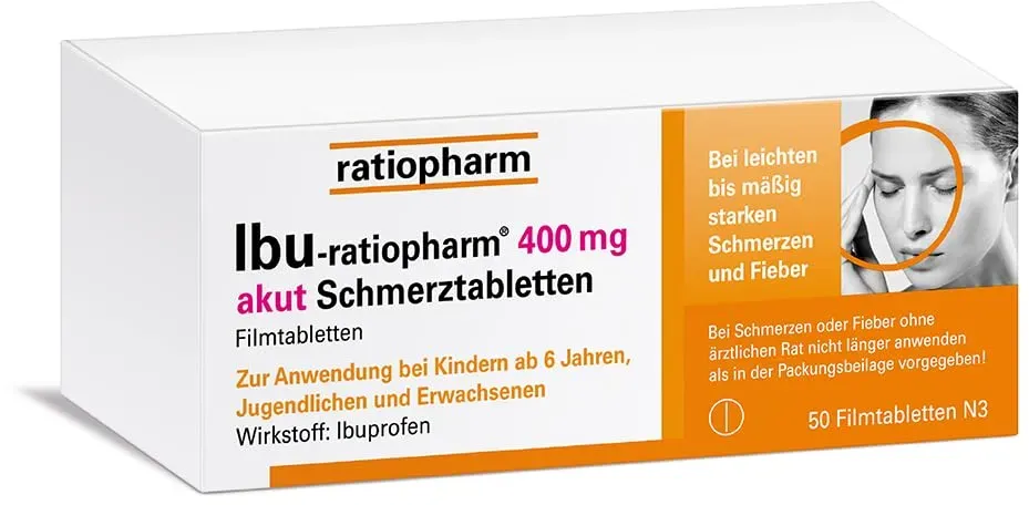 Zustand: Neu - 0,09 € / Stück - Schmerzen & Fieber - ADGC Zentiva Pharma GmbH - 17445321 - EAN: 4150174453211 - œ” Ibuprofen eignet sich zur Anwendung bei leichten bis mäßigen Schmerzen und Fieber, das Medikament benötigt keine besonderen Lagerungsbedingungen œ” Der Wirkstoff Ibuprofen ist gut verträglich und kann bereits bei Kindern ab n angewendet werden œ” Die Dosierung wird bei Kindern und Jugendlichen in Abhängigkeit vom Körpergewicht bestimmt, siehe Packungsbeilage œ” Die Einnahme der Filmtabletten erfolgt unzerkaut mit reichlich Flüssigkeit während oder nach einer Mahlzeit œ” Falls eine Einnahme für mehr als 3 Tage bei Kindern und Jugendlichen bzw. mehr als 4 Tage bei Erwachsenen erforderlich ist, oder die Symptome sich verschlimmern, ärztlichen Rat einholen - 21 Händler im amazon.de Marketplace IBU-ratiopharm 400 mg akut ist eine sehr bekannte und vertrauenswürdige Marke, hier für 8.50 Euro erhältlich. ![]() ![]() IBU-ratiopharm 400 mg akut Schmerztabletten: Bewährt bei Schmerzen und Fieber. Wirkstoff: Ibuprofen, 50 Filmtabletten
