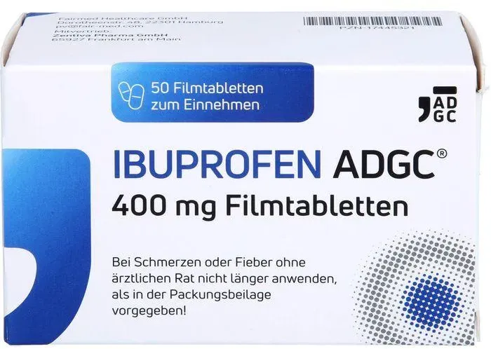 Zustand: Neu - 0,09 € / Stück - Schmerzen & Fieber - 1A PHARMA 1 A Pharma GmbH, Deutschland - 03045316 - EAN: 4150030453164 - Bei leichten bis mäßig starken Schmerzen und Fieber mit dem bewährten Wirkstoff Ibuprofen Kopfschmerzen, Zahnschmerzen, Regelschmerzen und Fieber Mit dem bewährten Wirkstoff Ibuprofen - entzündungshemmend und schmerzstillend Gut verträglich Geeignet für Kinder ab n (ab 20 kg Körpergewicht), Jugendliche und Erwachsene - 16 Händler im amazon.de Marketplace IBUPROFEN ADGC® 400mg ist mit 4.55 Euro eine weitere günstige Option von einem bekannten Hersteller. ![]() ![]() IBUPROFEN ADGC® 400mg - 50 Stück - gegen leichte bis mäßige Schmerzen wie Kopfschmerzen, Zahnschmerzen und Regelschmerzen sowie Fieber