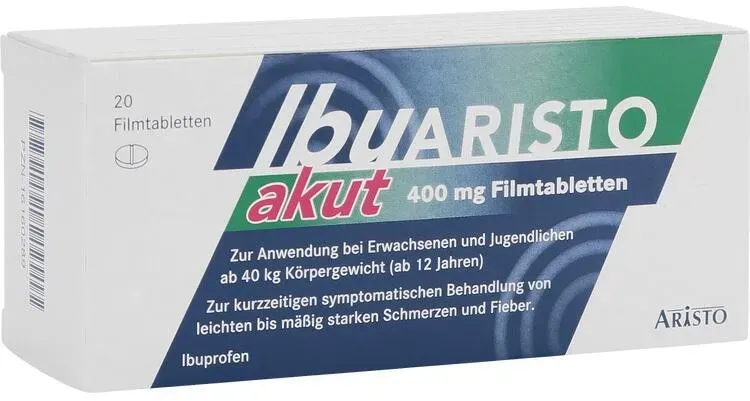21 Händlerangebote bei billiger.de - Kategorie: Arzneimittel - ARISTO - Anwendungsgebiet von Ibuprofen Ibuaristo akut 400 mg Filmtabletten gegen SchmerzenIbuprofen Ibuaristo akut 400 mg Filmtabletten gegen Schmerzen enthält den Wirkstoff Ibuprofen. Ibuprofen ist ein Arzneimittel, das Fieber senkt und Schmerzen lindert (nichtsteroidales Antiheumatikum/Antiphlogistikum, NSAR). Bei Erwachsenen und Jugendlichen ab 40 kg Körpergewicht (ab 1 n) wird Ibuprofen Ibuaristo akut 400 mg Filmtabletten gegen Schmerzen zur kurzzeitigen symptomatischen Behandlung von leichten bis mäßig starken Schmerzen und/oder Fieber angewendet. IbuARISTO akut schnelle Hilfe bei akuten Schmerzen und Fieber Schmerzen können den Alltag stark beeinträchtigen. IbuARISTO akut ist ein bewährtes rezeptfreies Schmerzmittel gegen Kopfschmerzen und Fieber. Die vielseitig einsetzbaren Schmerztabletten helfen Ihnen schnell und zuverlässig bei Beschwerden wie Kopfschmerzen, Regelschmerzen, Zahnschmerzen oder Fieber. Schmerzen können den Alltag stark beeinträchtigen. IbuARISTO akut ist ein bewährtes rezeptfreies Schmerzmittel gegen Kopfschmerzen und Fieber. Die vielseitig einsetzbaren Schmerztabletten helfen Ihnen schnell und zuverlässig bei Beschwerden wie Kopfschmerzen, Regelschmerzen, Zahnschmerzen oder Fieber. Die Anwendungsgebiete von IbuARISTO akut im überblick Die entzündungshemmende und fiebersenkende Wirkung von IbuARISTO akut trägt dazu bei, dass Sie sich schnell besser fühlen: effizient wirksam bei akuten ... Dieses Angebot ist eine der preiswertesten Optionen für ibudolor akut. ![]() ![]() STADA ibudolor akut 400mg Filmtabletten