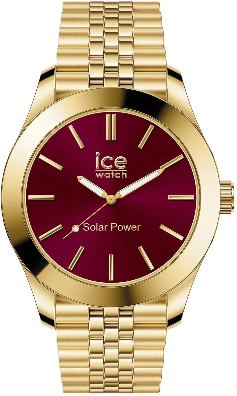 3 Händlerangebote bei billiger.de - Kategorie: Damenuhren - ICE-Watch - Entdecken Sie die ICE Steel Solar Power - Goldene burgunderfarbene Uhr, wo Eleganz auf Raffinesse trifft. Diese Analoguhr verfügt über eine Funktion: Solarenergie und leuchtende Zeiger. Diese hochwertige Uhr hat ein Gold Edelstahl Band ( 19 cm Länge und 17 mm Breite) mit einer Faltschließe mit Druckverschluss Gehäusedurchmesser: 34 mm,Gehäuse Höhe: 10 mm, Gehäusefarbe: Gold, Zifferblattfarbe: Burgund Wasserdicht: 10 bars -Gewicht: 82 g Die Uhr wird in eine schönen, original Geschenkbox geliefert und hat - GTIN:4895173335297 Diese rosa Damenuhr für 99 Euro ist ein stilvolles und modernes Accessoire für die modebewusste Frau. ![]() ![]() Ice-Watch 023790 Damenuhr ICE Steel Solar S Rosa