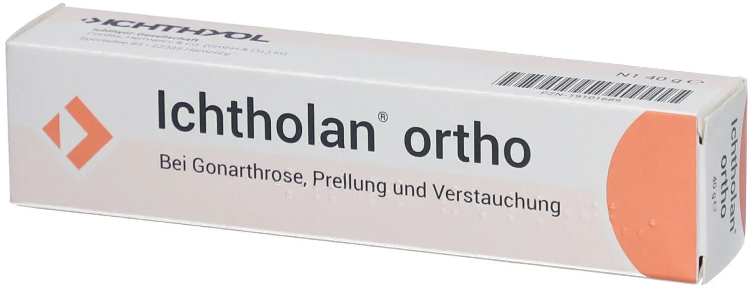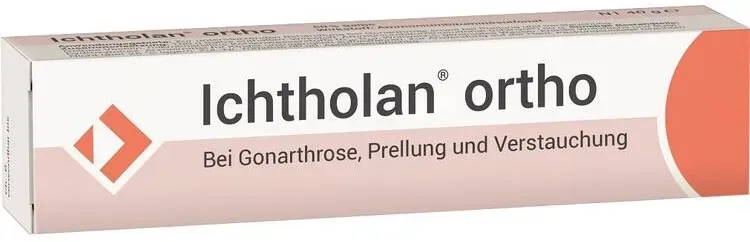 17 Händlerangebote bei billiger.de - Kategorie: Arzneimittel - Ichthyol-Gesellschaft Cordes Hermanni & Co. (GmbH & Co.) KG - Anwendungsgebiet von Ichtholan Ortho 50% SalbeIchtholan Ortho 50% Salbe ist ein Arzneimittel zur Anwendung auf der Haut mit dem Wirkstoff Ammoniumbituminosulfonat aus der Gruppe der sulfonierten Schieferöle. Das Präparat wirkt entzündungshemmend, antibakteriell, durchblutungssteigernd sowie schmerzlindernd.Es wird angewendet zur unterstützenden Behandlung bei Verschleiß des Kniegelenkes (Gonarthrose) sowie bei Prellung und Verstauchung. Tipps & Infos: Ichtholan Ortho 50% Salbe ist die schwarze Salbe mit der Kraft aus dem Berg insbesondere für die Behandlung von Sportverletzungen wie Prellungen und Verstauchungen. Der Wirkstoff Ichthyol wird aus natürlichem Schiefergestein gewonnen und verleiht Ichtholan seine schwarze Farbe und den charakteristischen Geruch. Daher Ichtholan ortho gut mit einem Verband abdecken, um Flecken auf der Kleidung zu vermeiden!Fleckenbehandlung: frische Flecken mit heißem Wasser auswaschen. Eingetrocknete Flecken bei Bedarf mit Gallseife, Eukalyptusöl oder einem milden Bleichmittel behandeln.Wirkstoffe / Inhaltsstoffe / Zutaten0.5 g Ammonium bituminosulfonatKohlenwasserstoffe, mikrokristallin (C40-C60) Hilfstoff (+)Vaselin, gelb Hilfstoff (+)Wasser, gereinigt Hilfstoff (+)0.17 g Wollwachs Hilfstoff (+)Butylhydroxytoluol Hilfstoff (+)GegenanzeigenDas Arzneimittel darf nicht angewendet werden,wenn Sie allergisch gegen ... Dieses Angebot bietet eine 40g-Packung eines Reimports zu einem sehr guten Preis. ![]() ![]() Orifarm GmbH ICHTHOLAN 50% Salbe 40 g