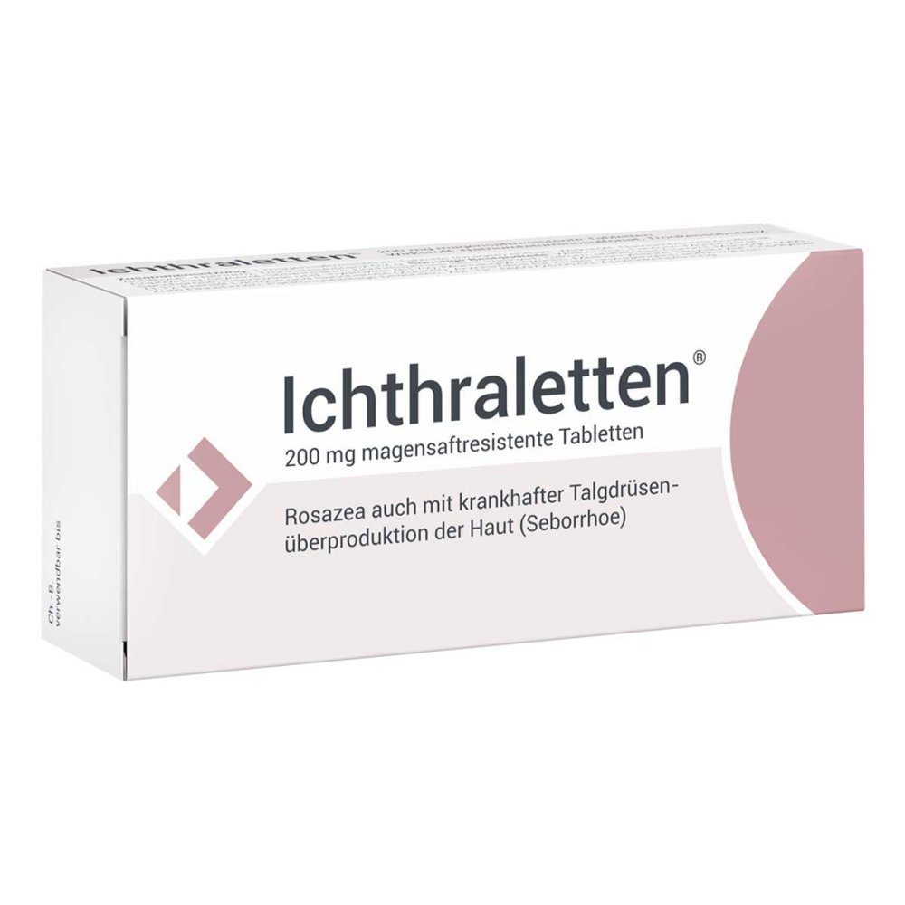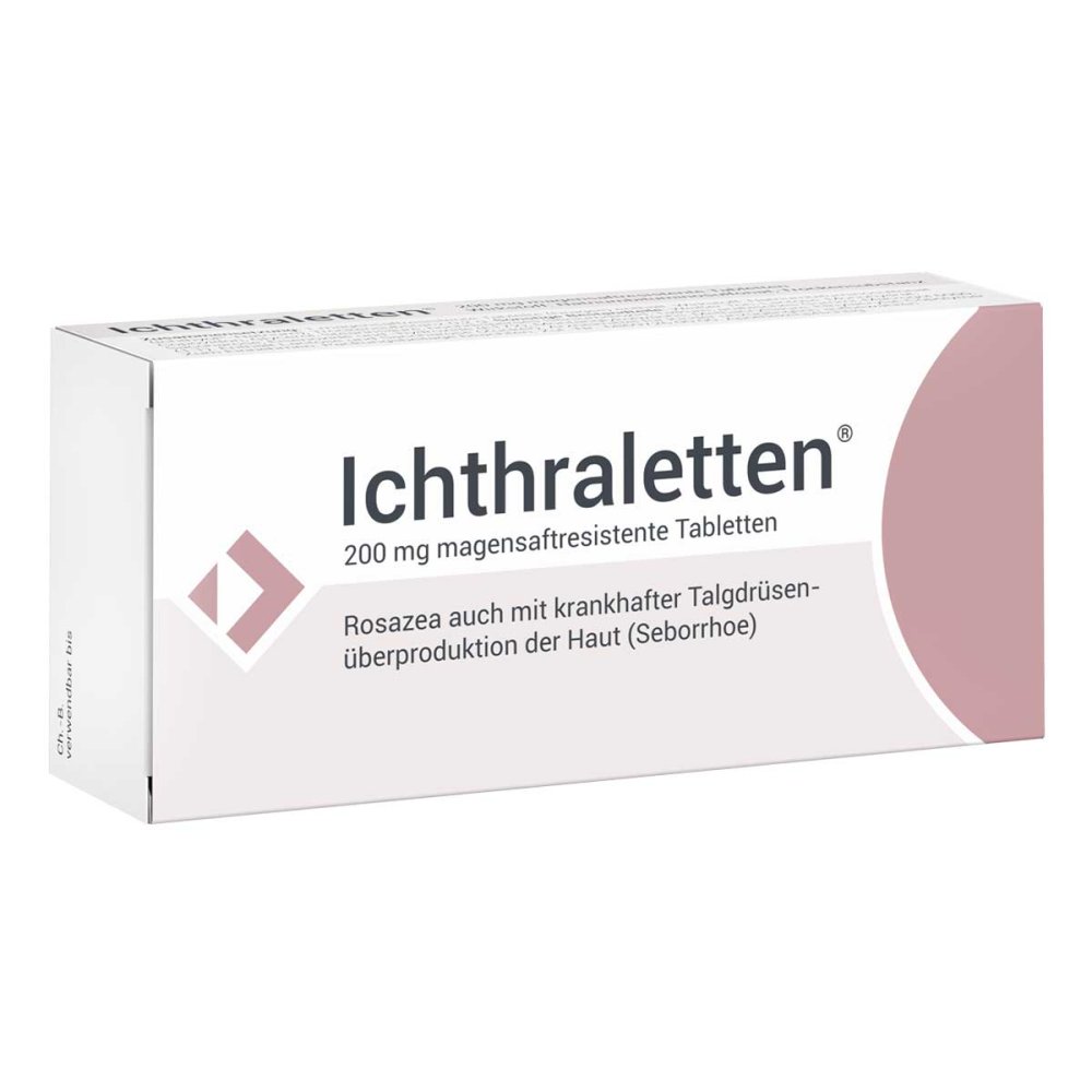 Ichthraletten 200 mg META PreisvergleichMit dem Meta-Preisvergleich suchen Sie gleichzeitig bei den großen Preisvergleich Portalen!Jetzt live Suche nach ichthraletten 200 mg starten! Ichthraletten 200 mg KaufberatungIchthraletten 200 mg - Kaufberatung und wichtige InformationenIchthraletten 200 mg magensaftresistente Tabletten ist ein bewährtes Arzneimittel zur Behandlung von Rosazea und Hautproblemen mit Talgdrüsenüberproduktion. Hier erhalten Sie einen umfassenden Überblick für Ihre Kaufentscheidung. Wirkstoff und AnwendungsgebieteDas Medikament enthält Natriumbituminosulfonat, ein sulfoniertes Schieferöl, das seit 1952 zur Behandlung von Rosazea eingesetzt wird[7]. Der Wirkstoff hat eine entzündungshemmende, antibakterielle und pilzhemmende Wirkung und beruhigt gereizte Haut von innen heraus[1][2]. Ichthraletten ist geeignet zur Behandlung von: