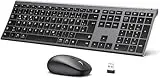 Auf Lager Versand durch AmazoniClever kabellose Tastatur und Maus Set, 2.4G kabellose Tastatur und Maus, USB-C wiederaufladbar, Originalgröße, schlanke, dünne und widerstandsfähige Tastatur für Windows 7/8/10, Mac OS