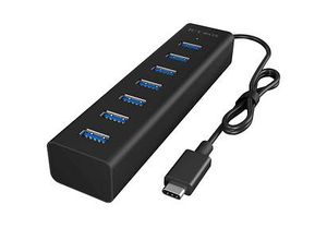keine Angabe Versand durch AmazonICY BOX IB-Hub1700-C3 7-fach USB Type-C Hub mit 7x USB 3.0 (Type-A) Anschlüssen und Netzteil, integriertes Kabel, Aluminium, schwarz