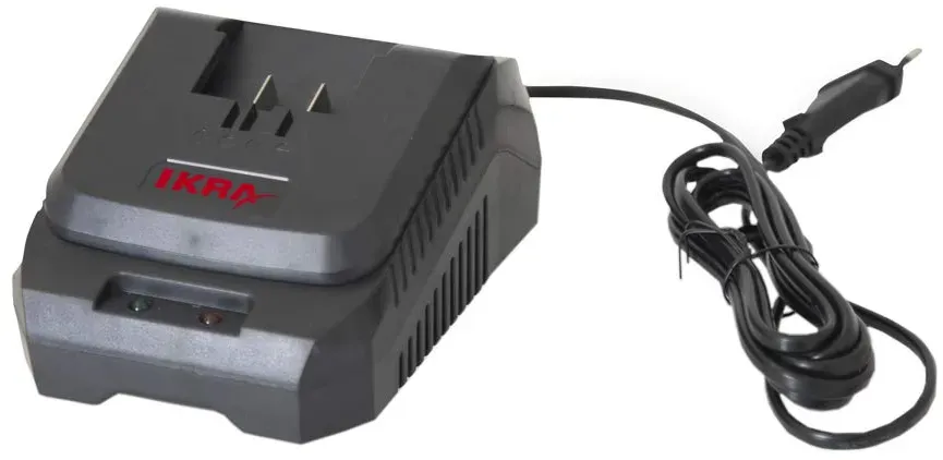 Zustand: Neu - Ladegeräte - IKRA - 17180973-1 - EAN: 4010951170703 - Standardladestation Geeignet für IKRA 40V Batterien LED-Anzeige Ladezeit ca. 3 - 5 Std Integrierter Überhitzungs- und Überlastschutz von Zellen ONE-FOR-ALL 40-V-Batteriesystem: Batterien, die mit allen IKRA-Geräten mit dem 40-V-Logo kompatibel sind - bei Amazon.de ![]() ![]() IKRA 15130062 20V Akku Schnell-Ladegerät Ladestation mit LED Anzeige (Schnelllader)