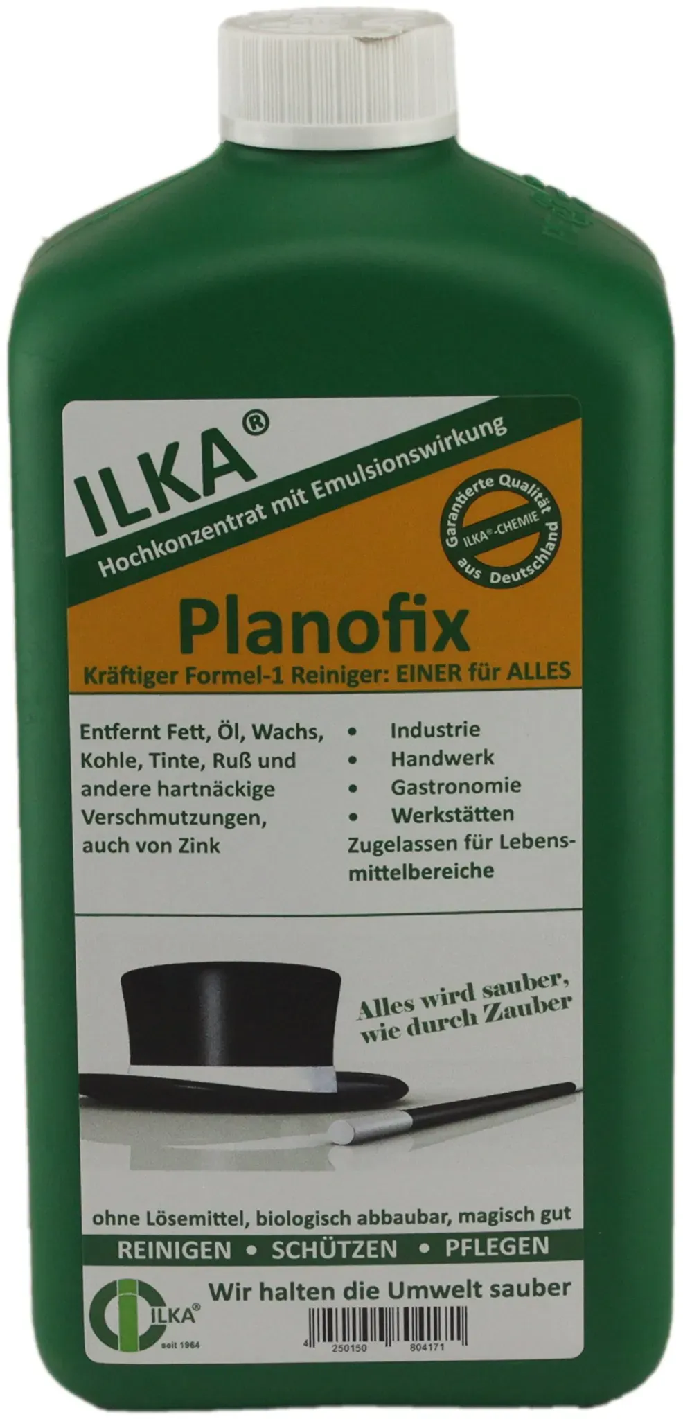 EAN: 4250150804171 - für öl, Fett, Wachs, Ruß. Enorm schnelle Tiefenwirkung, löst hartnäckige Verschmutzungen. Für fast alle Oberflächen. Wenn nicht -sofort lieferbar- ist die Lieferzeit 5-10 Tage. - bei reinigungsberater.de - aus Yadore Produktdaten Dieses 1-Liter-Konzentrat ist eine preisgünstige Option für den Einstieg in die ILKA Planofix Produktwelt. ![]() ![]() ILKA Allzweckreiniger Planofix 1 l