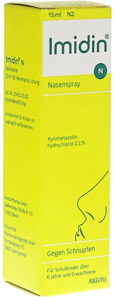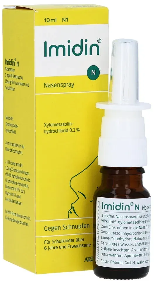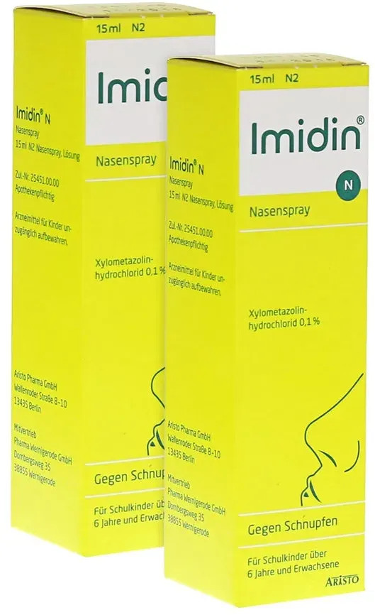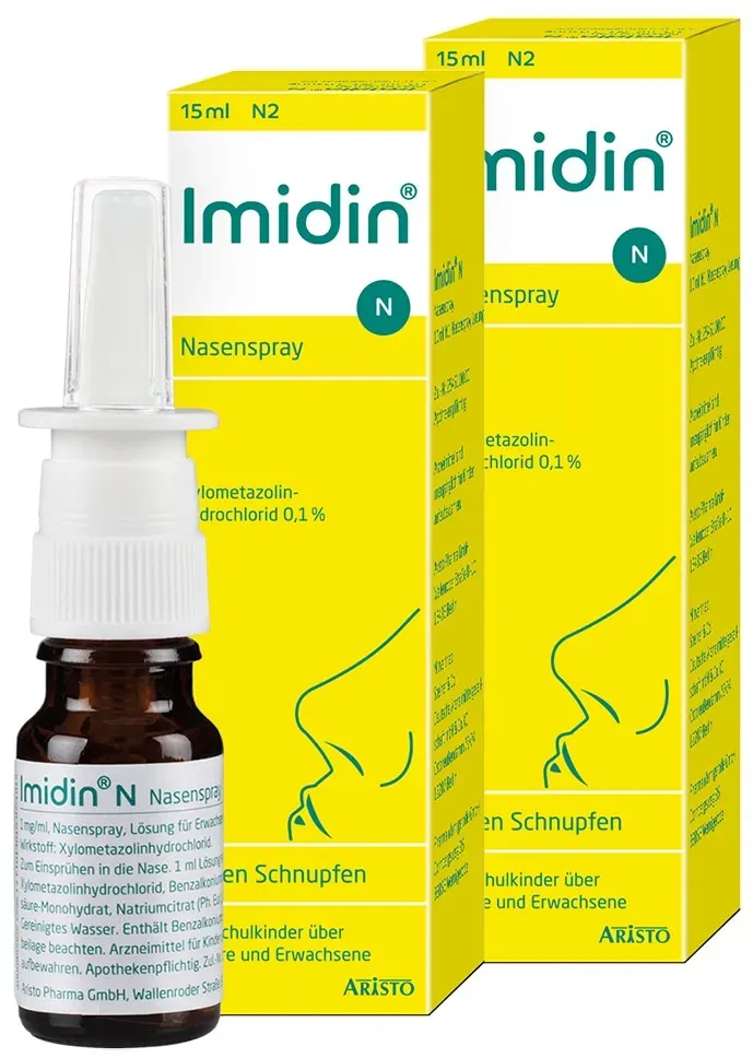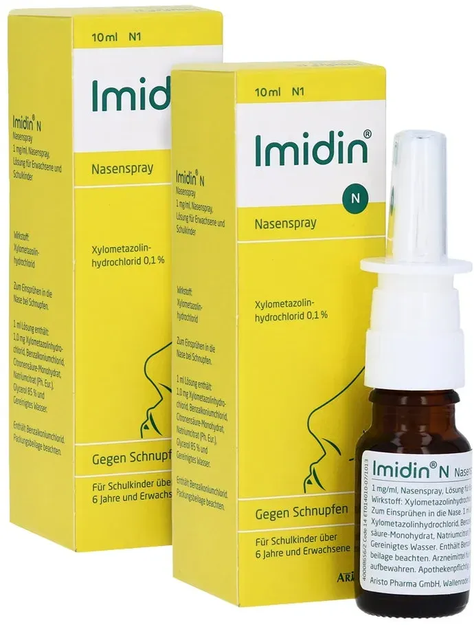 Kategorie: Arzneimittel - ARISTO - PZN:81013059 - IMIDIN N Nasenspray - 2x15ml 2X15 ml - 4,49 Euro bei medikamente-per-klick.de - gefunden von billiger.de Dieses Set mit 2x10ml Nasenspray für 5,19 Euro ist eine gute Option für den Vorrat. ![]() ![]() Imidin N Nasenspray Set 1 2X10 ml
