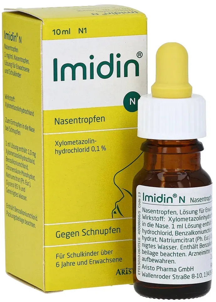 166,00 /l - Kategorie: Arzneimittel - ARISTO - GTIN:4150068764959 - PZN:06876495 - Imidin N Nasentropfen 10 ml - rezeptfrei - von Aristo Pharma GmbH - Nasentropfen - 10 ml - 1,66 Euro bei DocMorris Apotheke - gefunden von billiger.de Dieses Angebot ist mit 1,70 Euro das günstigste Einzelprodukt und somit ideal für preisbewusste Käufer. Juvalis.de Imidin N Nasenspray